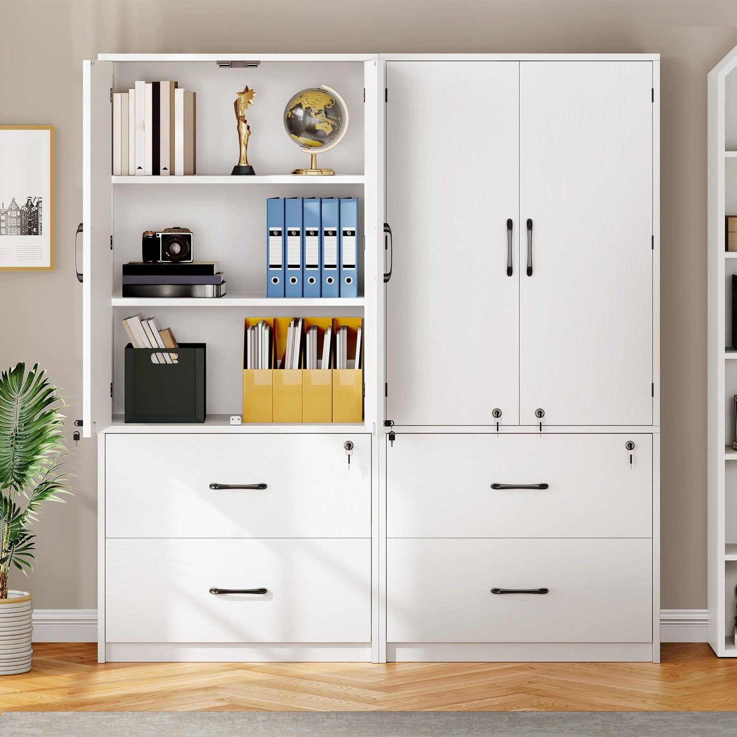 YITAHOME Wood File Cabinets, Heavy Duty Garage Tool Cabinets with Doors & Adjustable Shelves, Big Storage Filing Lockers for Home Office, Living Room, Pantry, Gym, Basement, Warehouse, White