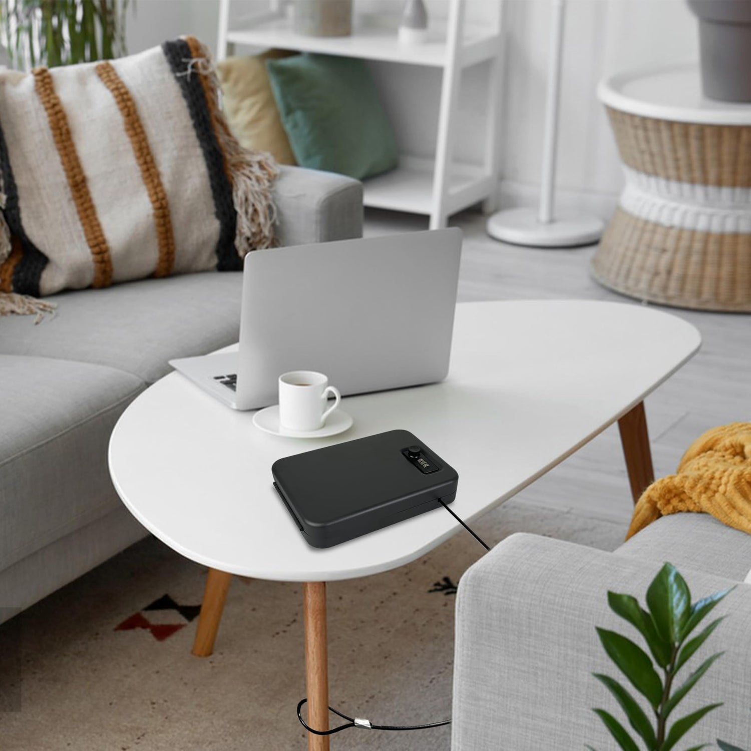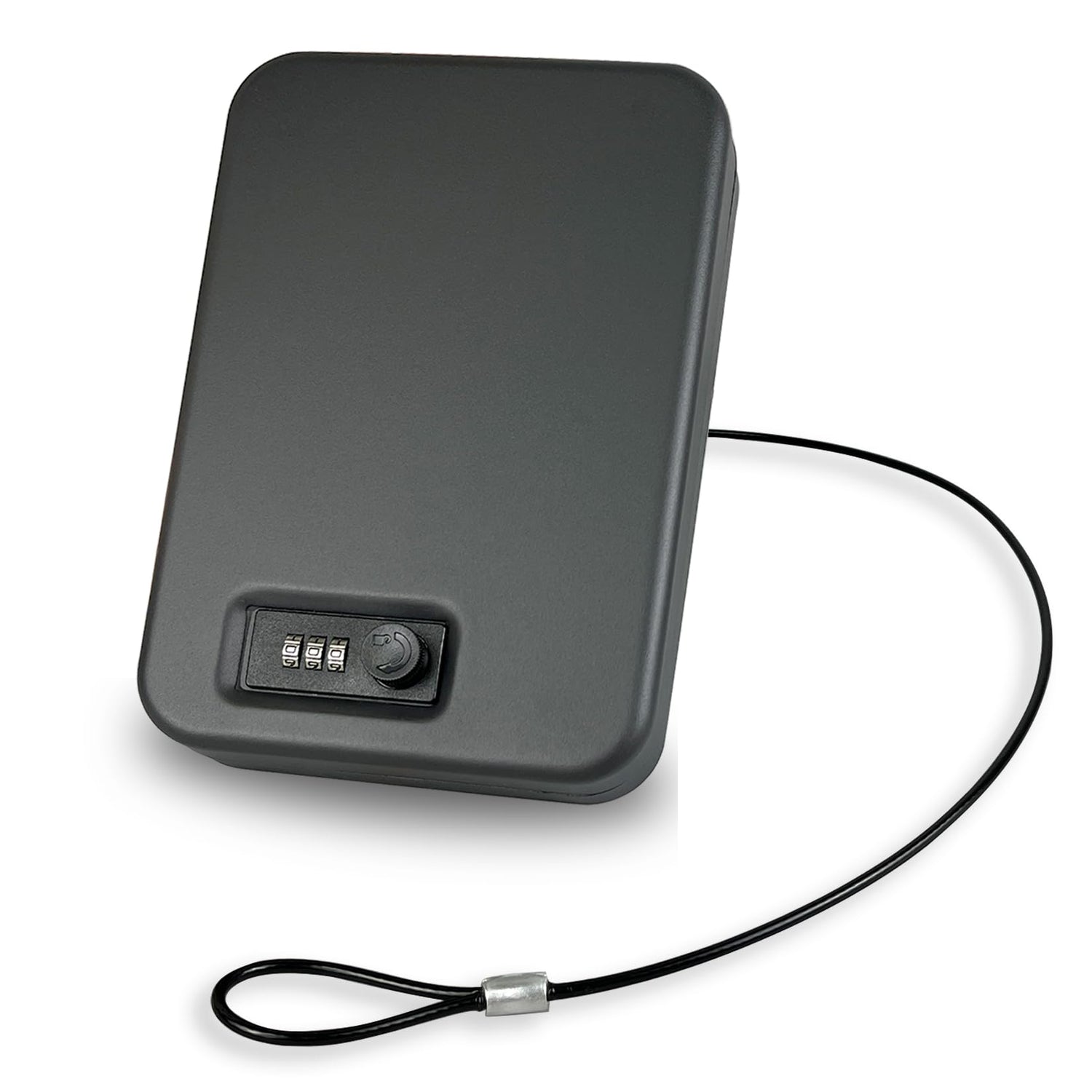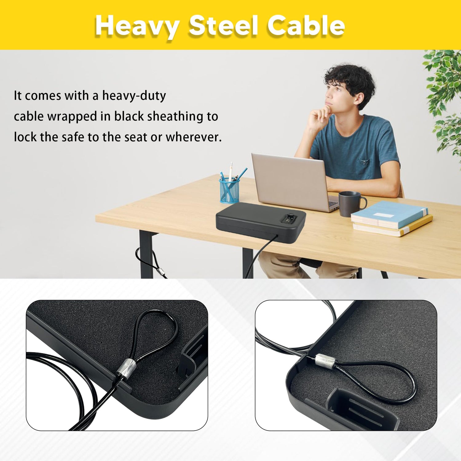 - [ Heavy-Duty Security Cable – Extra Anti-Theft Protection ] The handgun lock box is equipped with a durable steel security cable wrapped in a protective black sleeve, this pistol safe can be securely anchored to your car seat, furniture, or any fixed object. The reinforced cable design provides an extra layer of anti-theft protection, ensuring that your firearm and valuables stay secure no matter where you are.