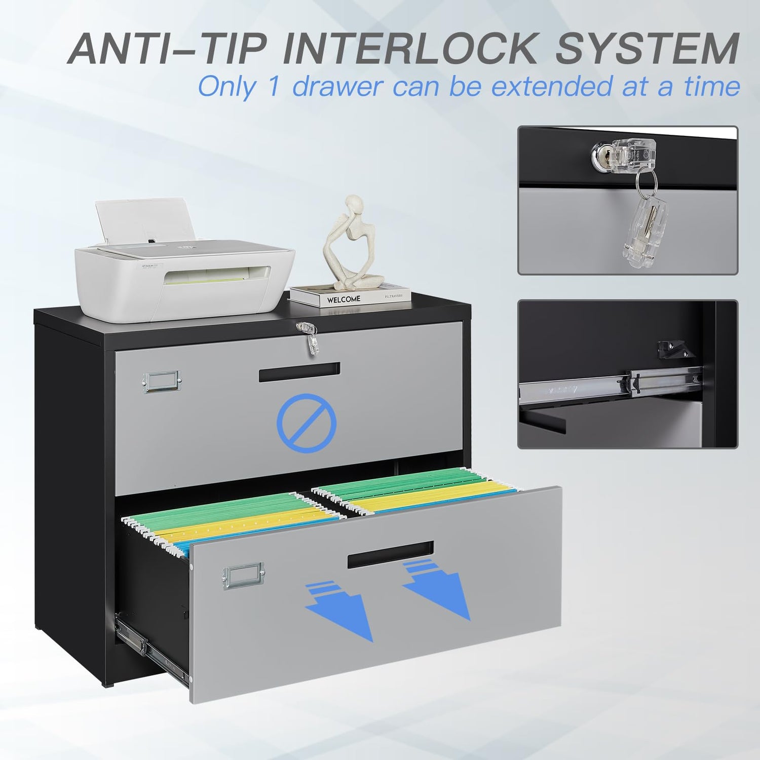 - 【Higher Level Security】The metal file cabinet is composed of exactly designed interlock device and external ANTI-TILT mechanism. Only one drawer could be opened at the same time for safety sake, combine this feature with the ANTI-TILT mechanism, this 2 drawer file cabinets ensures much more safety than others.