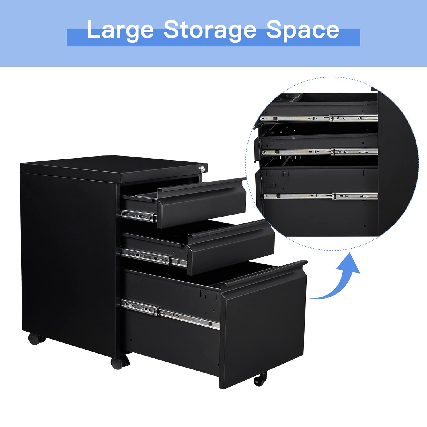 - 【ADD MORE MOBILITY】: Rolling on 5 rotatable wheels, including 2 front casters with braking function and 1 center caster to prevent tipping and 2 x 360° swivel casters go to any direction easily.this filing cabinet can keep stable or move freely and safely according to your need.