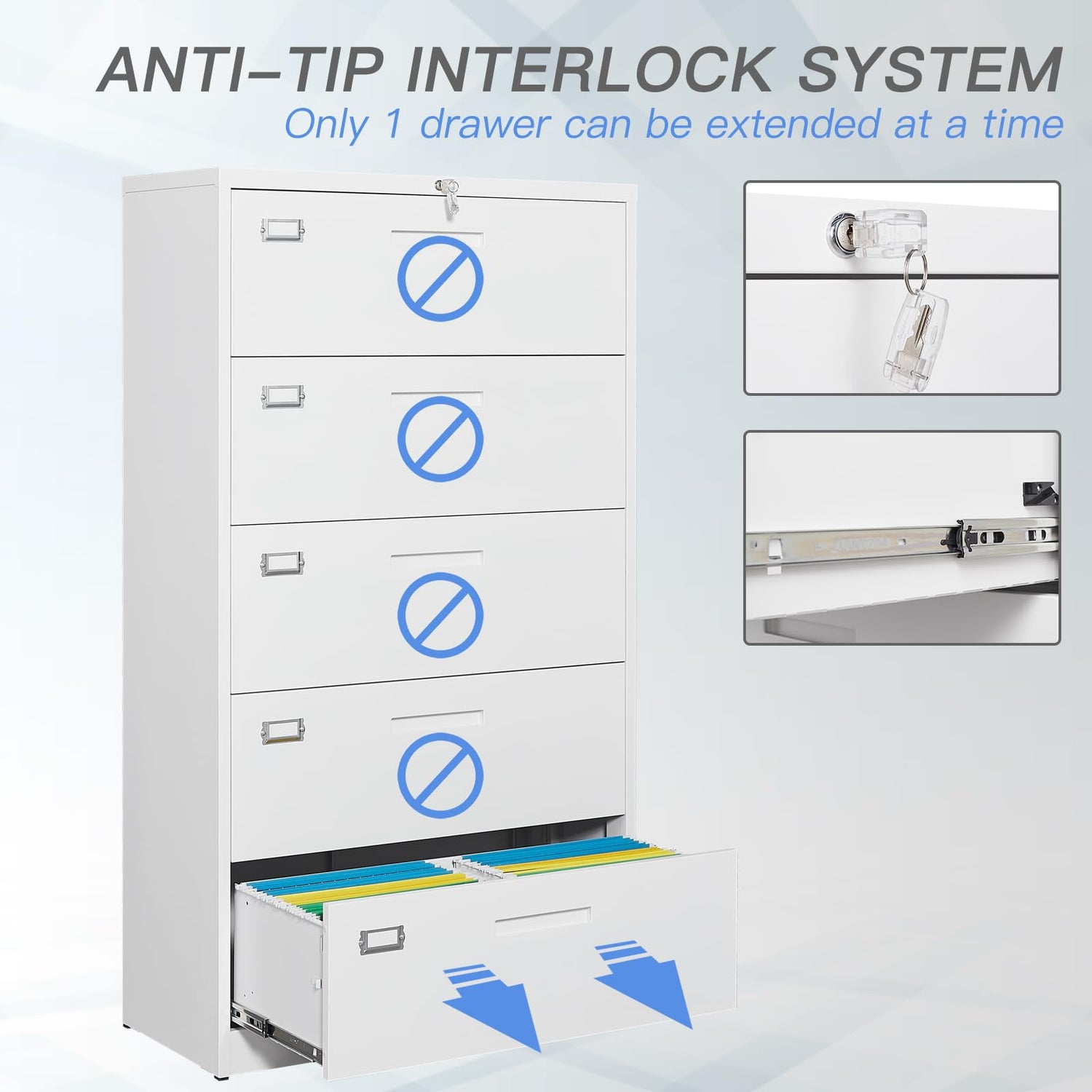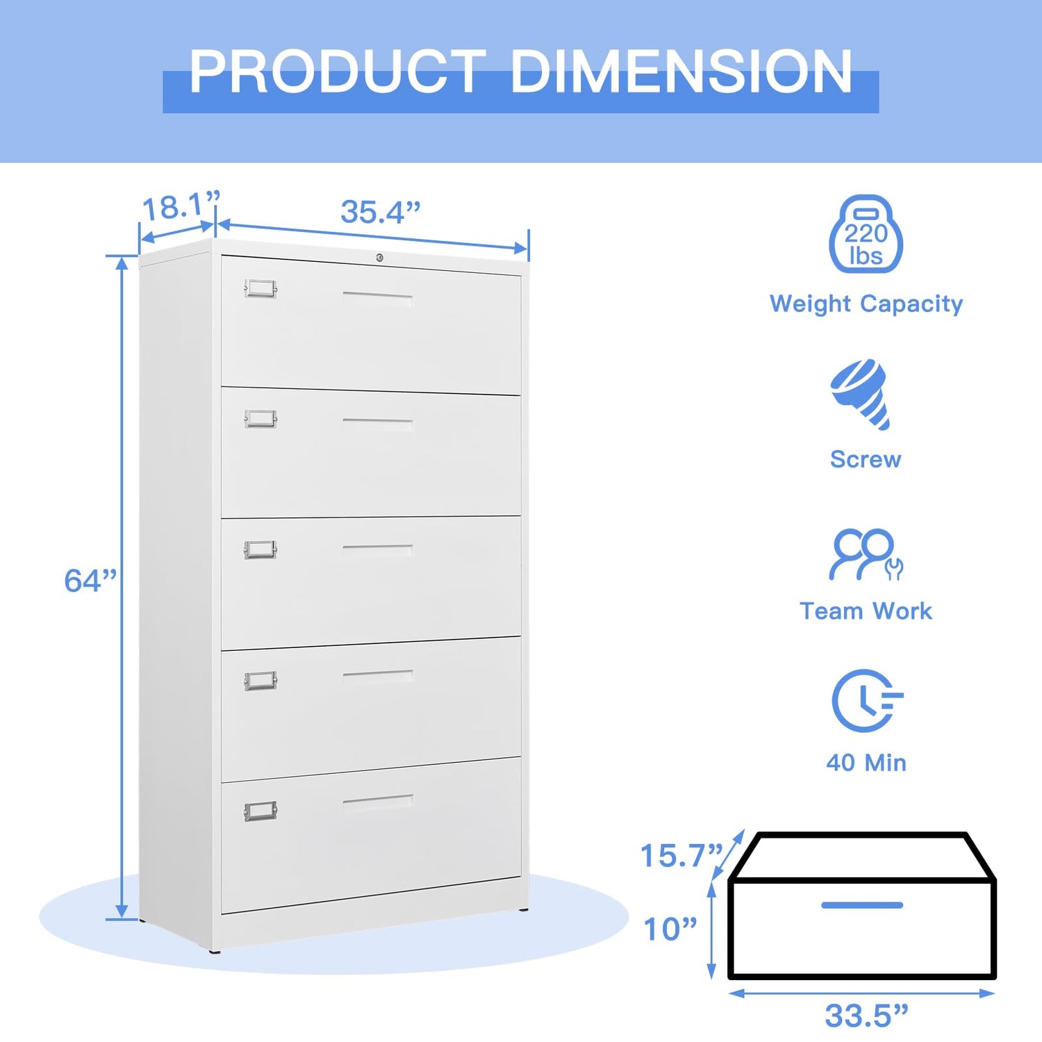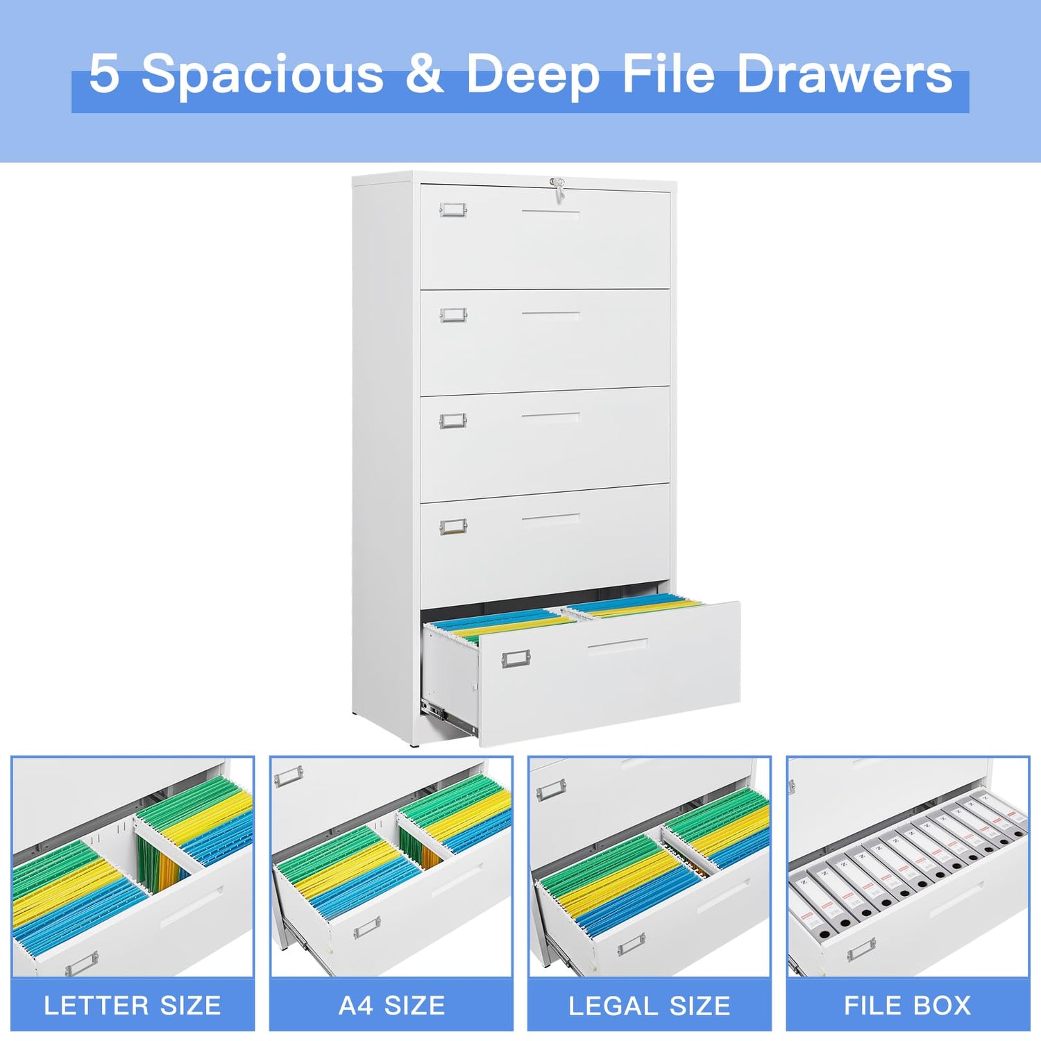 Transform your workspace with the Yizosh 5-Drawer Metal Locking File Cabinet—a blend of efficiency, security, and style, designed to meet all your filing needs.
