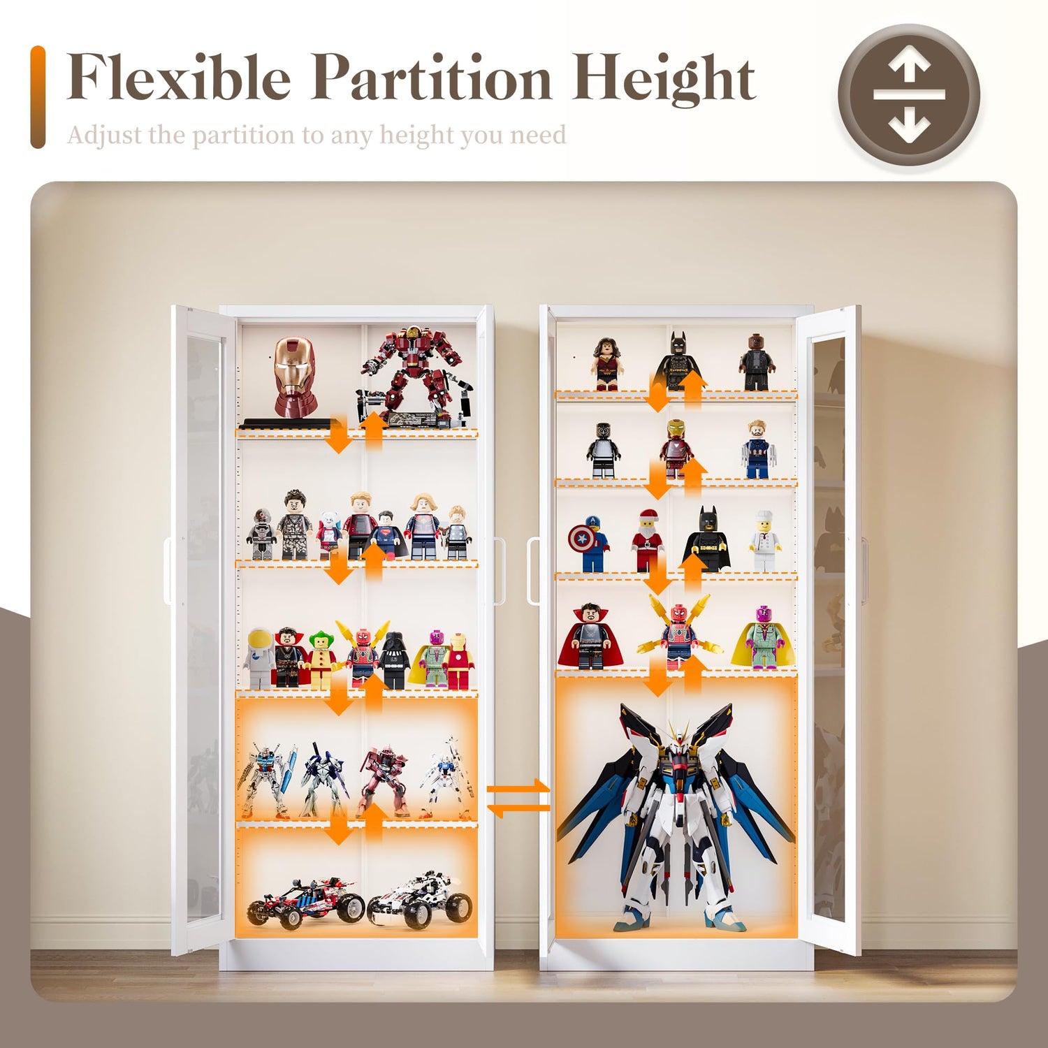 • 【Multifunctional Application】: As a versatile display case, it can not only be used as a display cabinet for Legos, Gundam models, and plush dolls to highlight the charm of your collection; it can also be transformed into a liquor cabinet, fragrances cabinet, and green plants cabinet to meet your needs in different scenarios and add a unique style to your home.