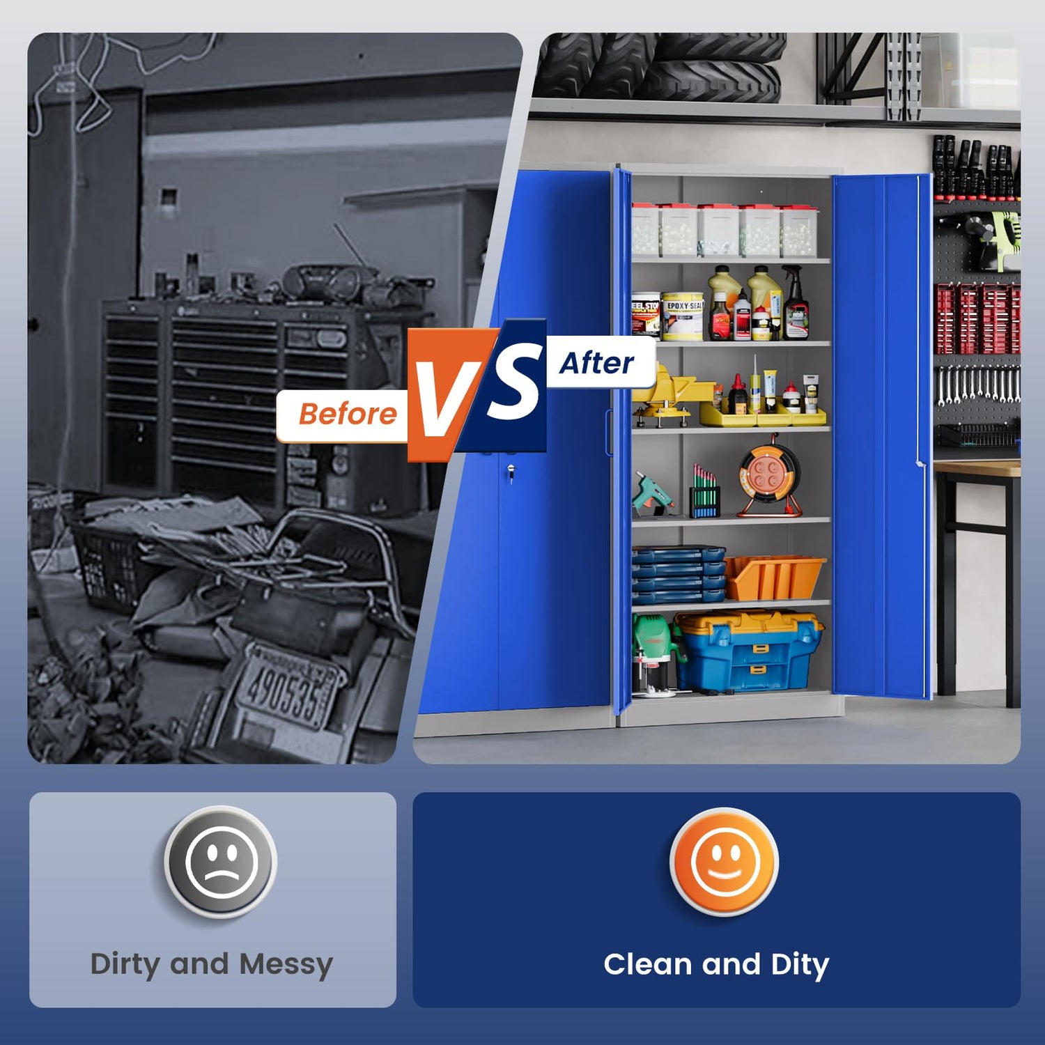 Yizosh Metal Garage Storage Cabinet with 2 Doors and 5 Adjustable Shelves - 71" Steel Lockable File Cabinet,Locking Tool Cabinets for Office,Home,Garage,Gym,School (Gray Blue)