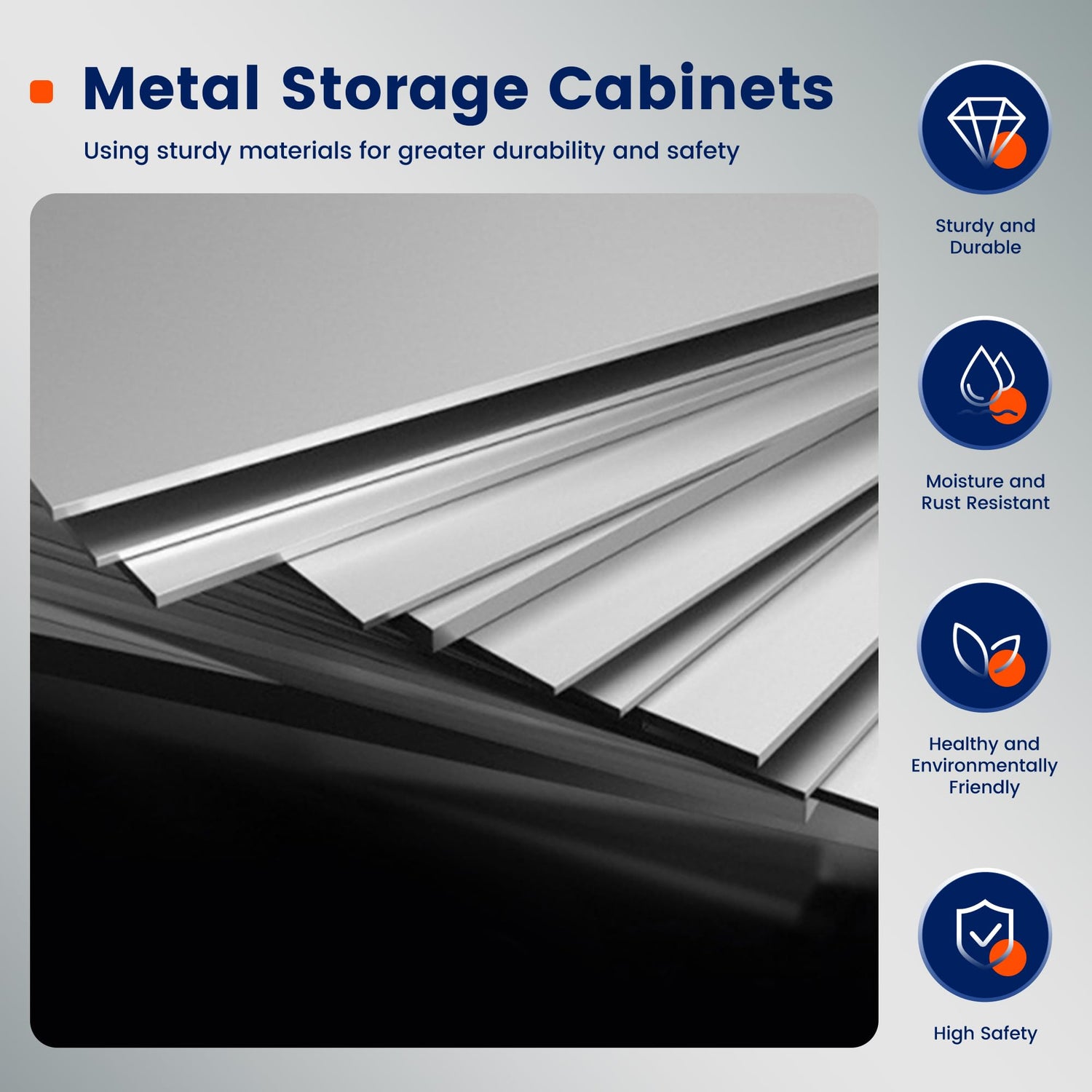 - 【High-Quality Metal Material】 – Yizosh metal cabinets are made of high-spec cold-rolled steel and equipped with unique safety locks to ensure long-lasting durability and safe storage of heavy items.
