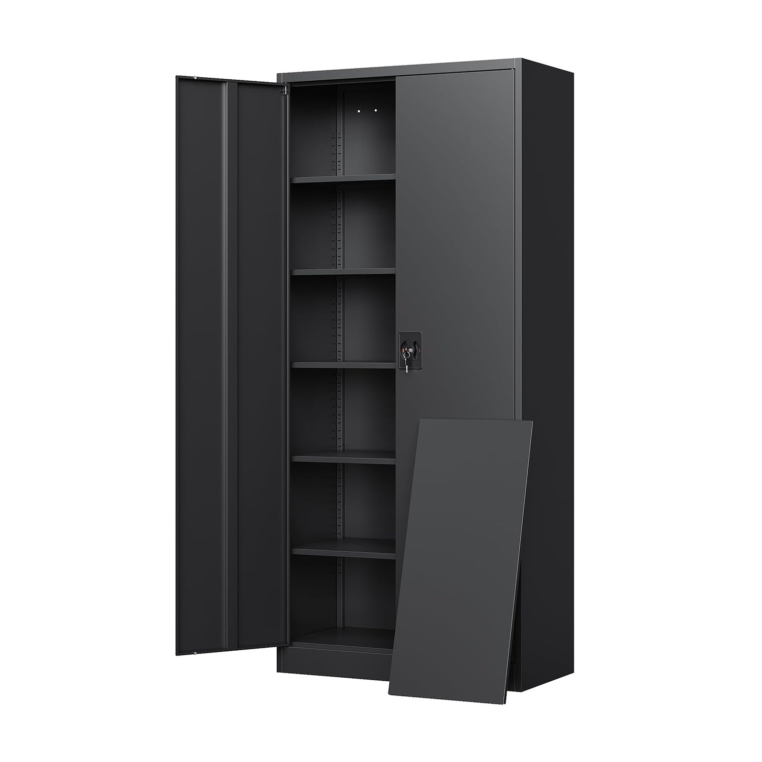 - 【Sturdy & Durable】Metal garage cabinets with whole-in-one reinforced heavy-duty metal frame, metal storage cabinet with locking doors load capacity up to 180 lbs per shelf, total weight capacity of 900 LBS! Black file cabinet steel sheet thickness up to 0.89 mm. Environmental protection powder, scratch resistance, and rust resistance.