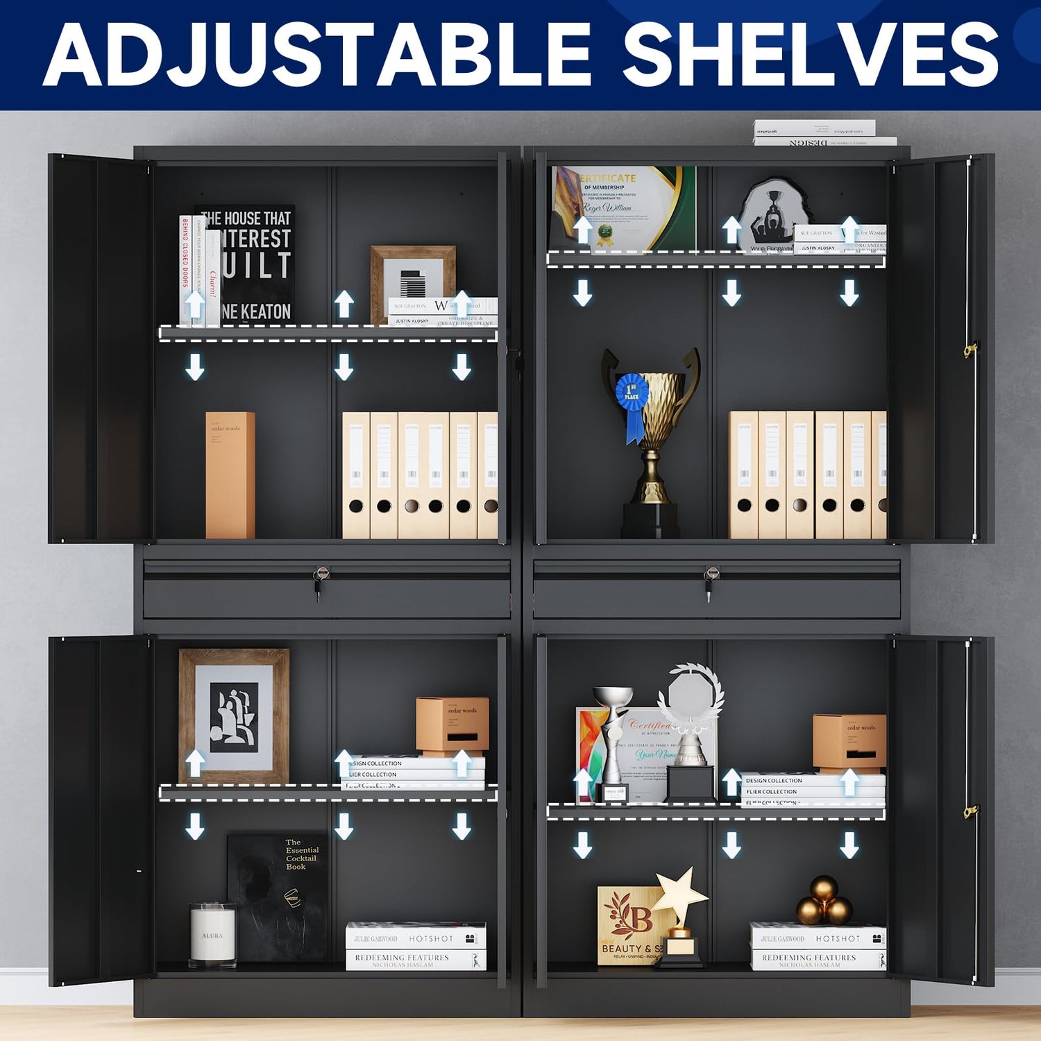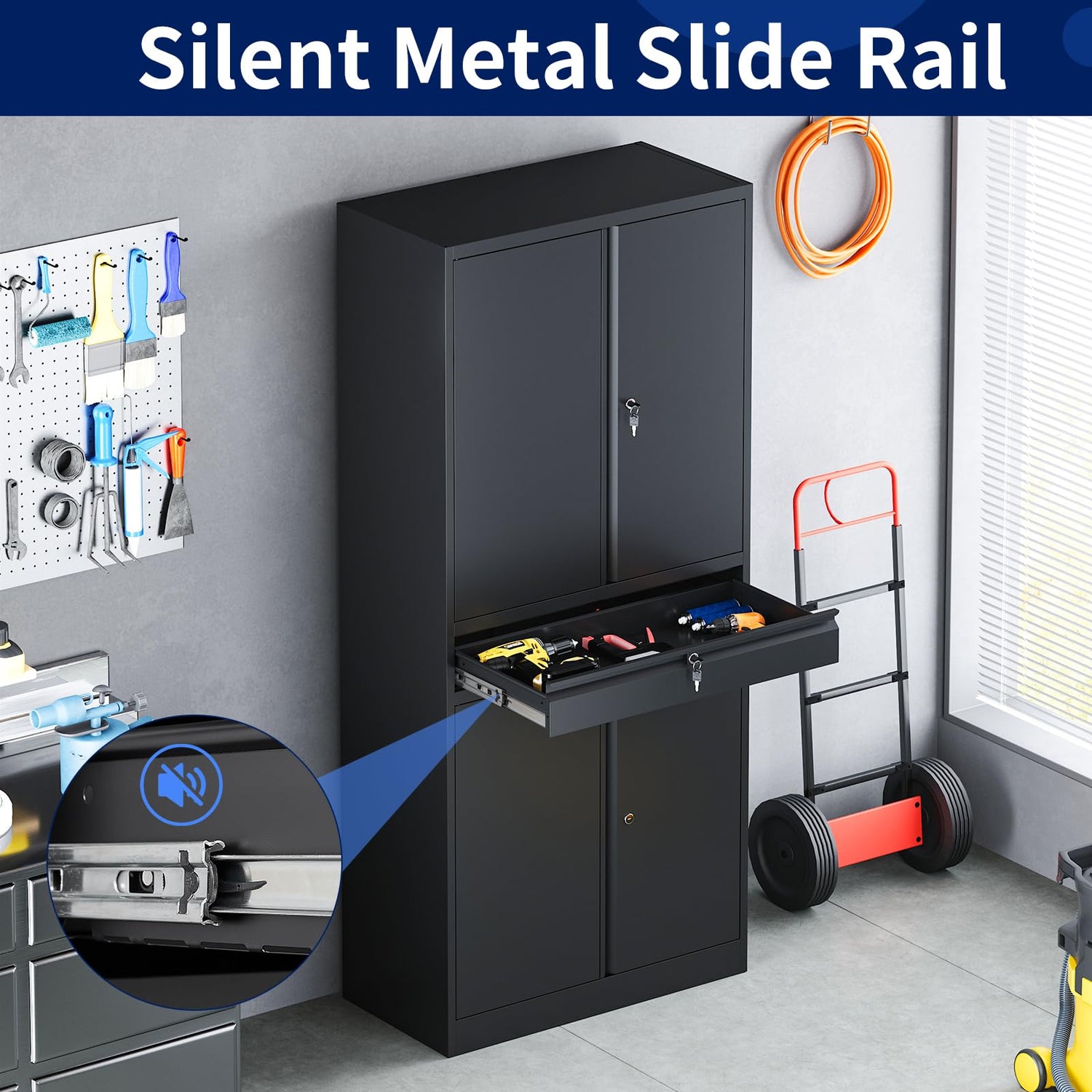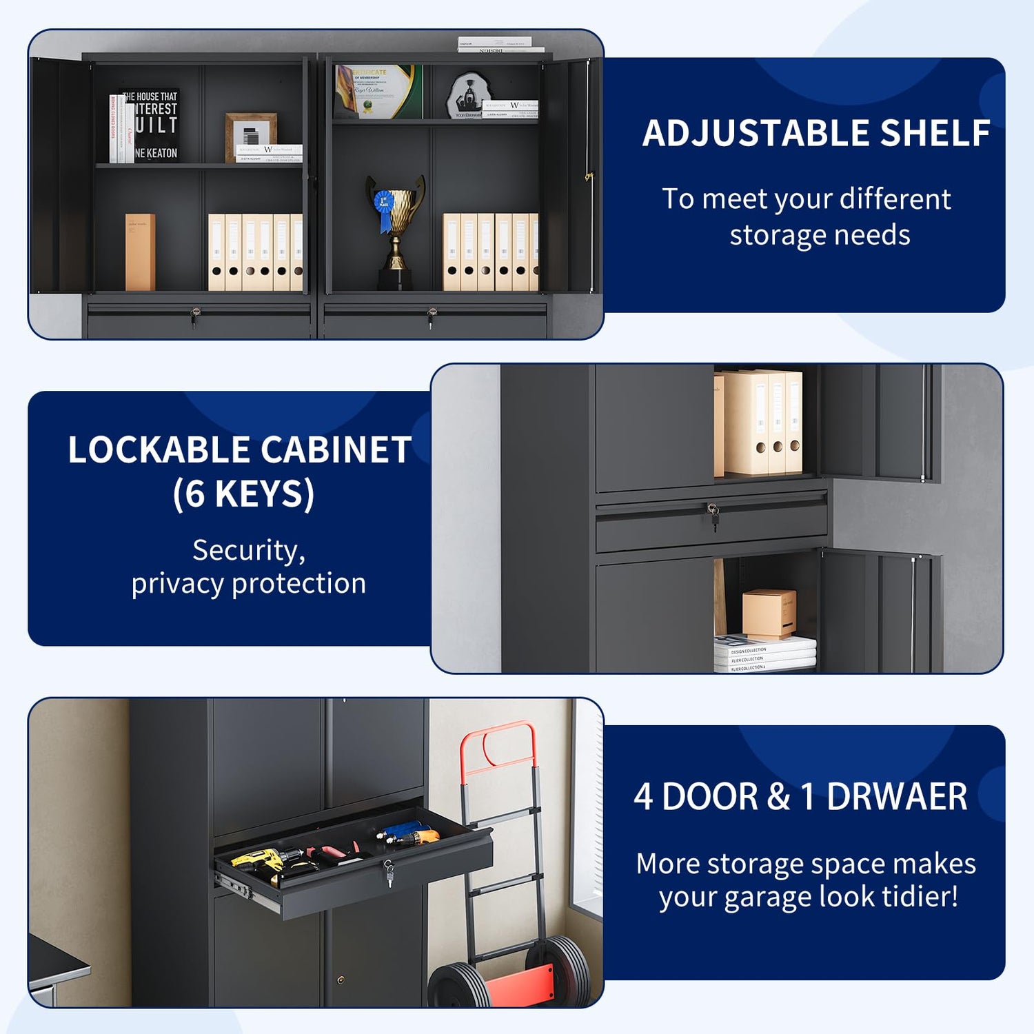 Yizosh Metal Garage Storage Cabinet with Locking Doors and Adjustable Shelves, Tool Storage Cabinet with 1 Drawer - 71" Steel Locking Cabinet for Garage, Warehouse (Black)