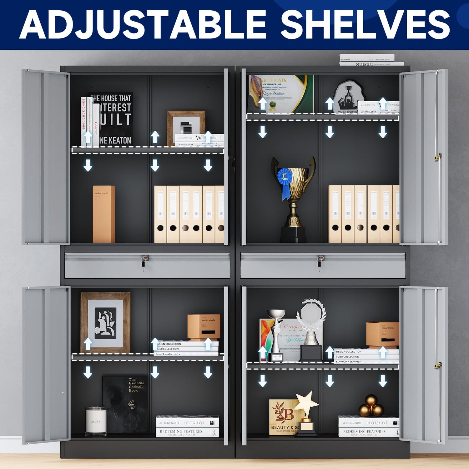 - 『PRACTICAL DESIGN』:Our tall metal cabinet equipped with 1 drawer and 2 adjustable shelves to provide adaptability and convenience. High-grade lock picking to secure valuables, two keys are included. Regardless of what your storage needs are, you have the ability to create a unique storage space to suit them.