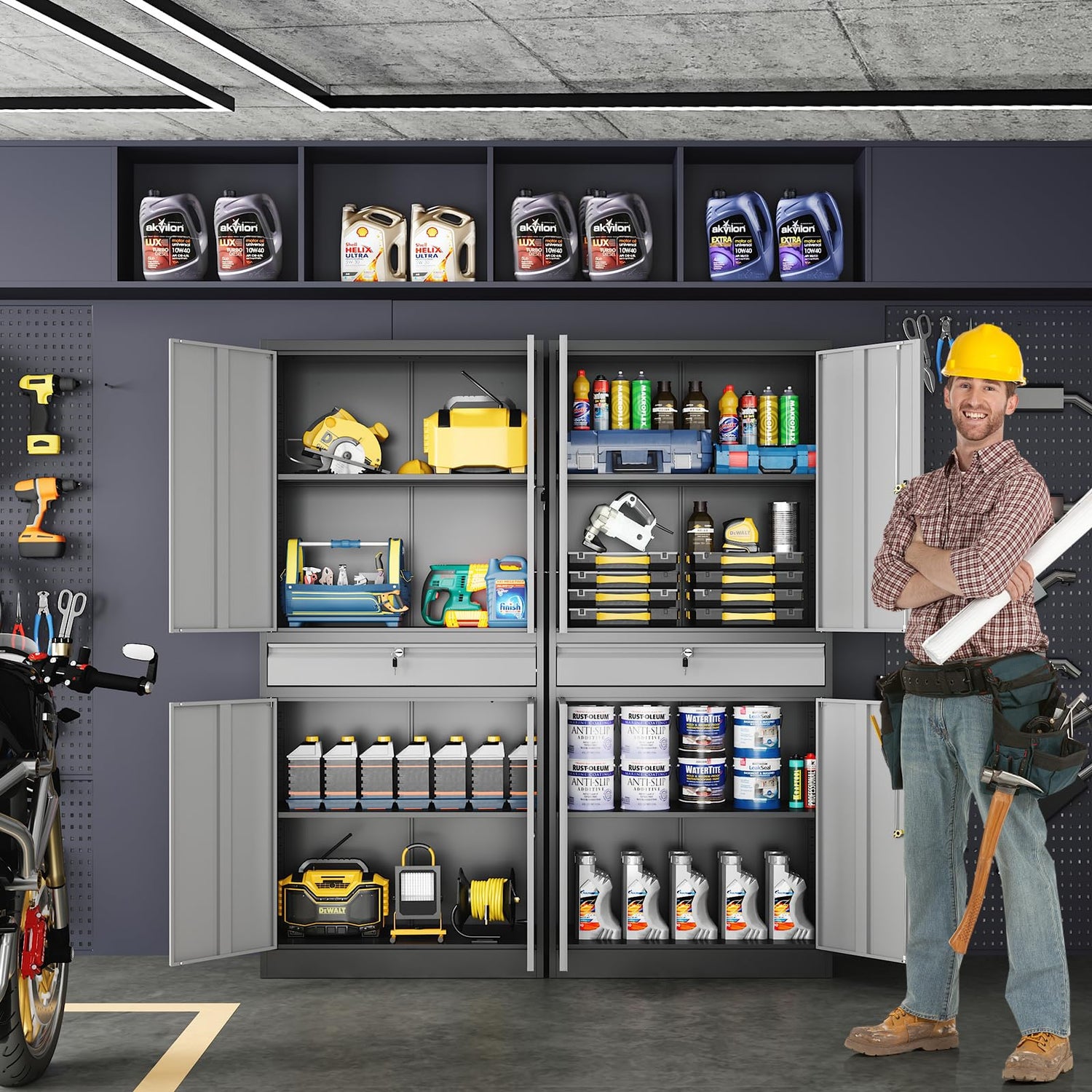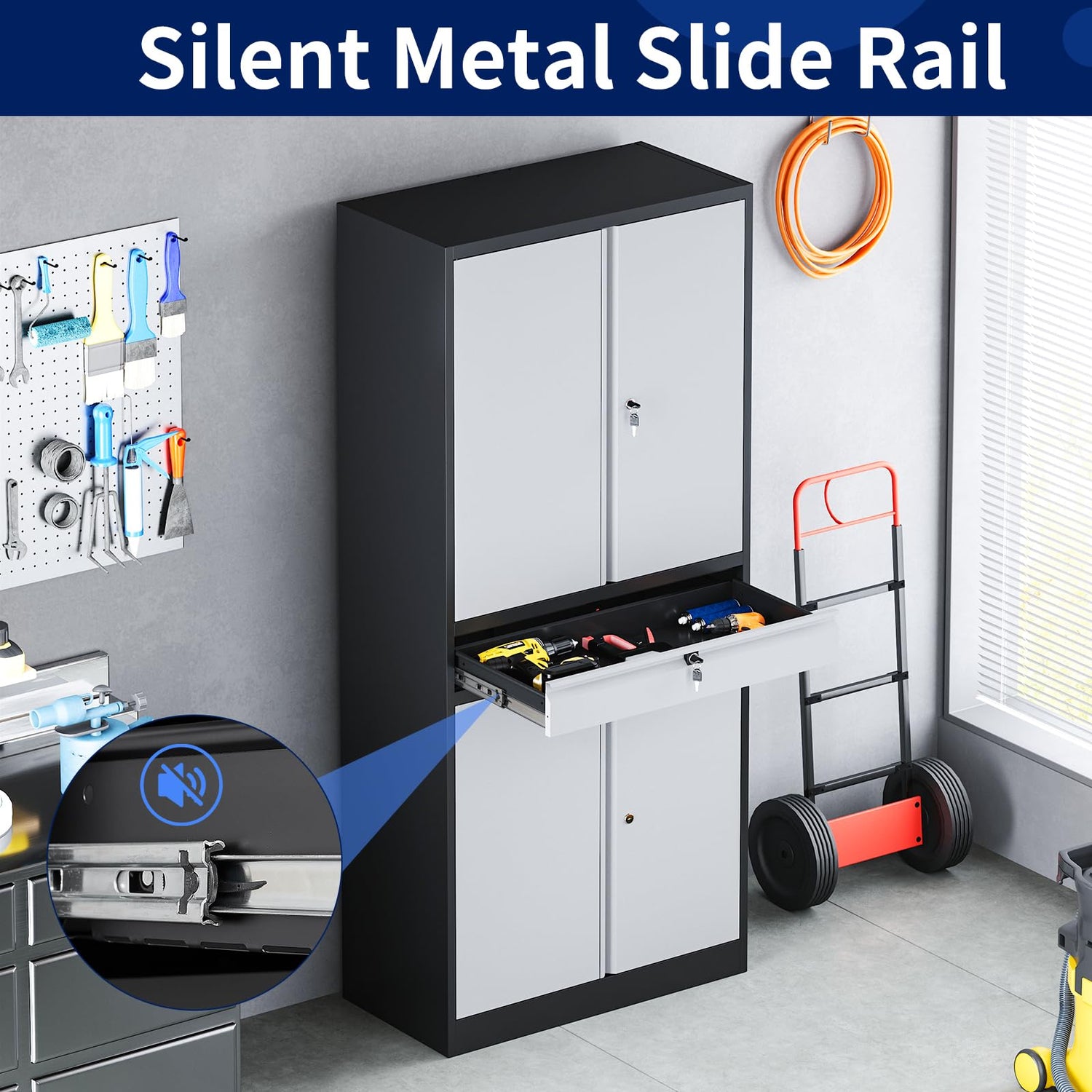 Yizosh Metal Garage Storage Cabinet with Locking Doors and Adjustable Shelves, Tool Storage Cabinet with 1 Drawer - 71" Steel Locking Cabinet for Garage, Warehouse (Gray Black)