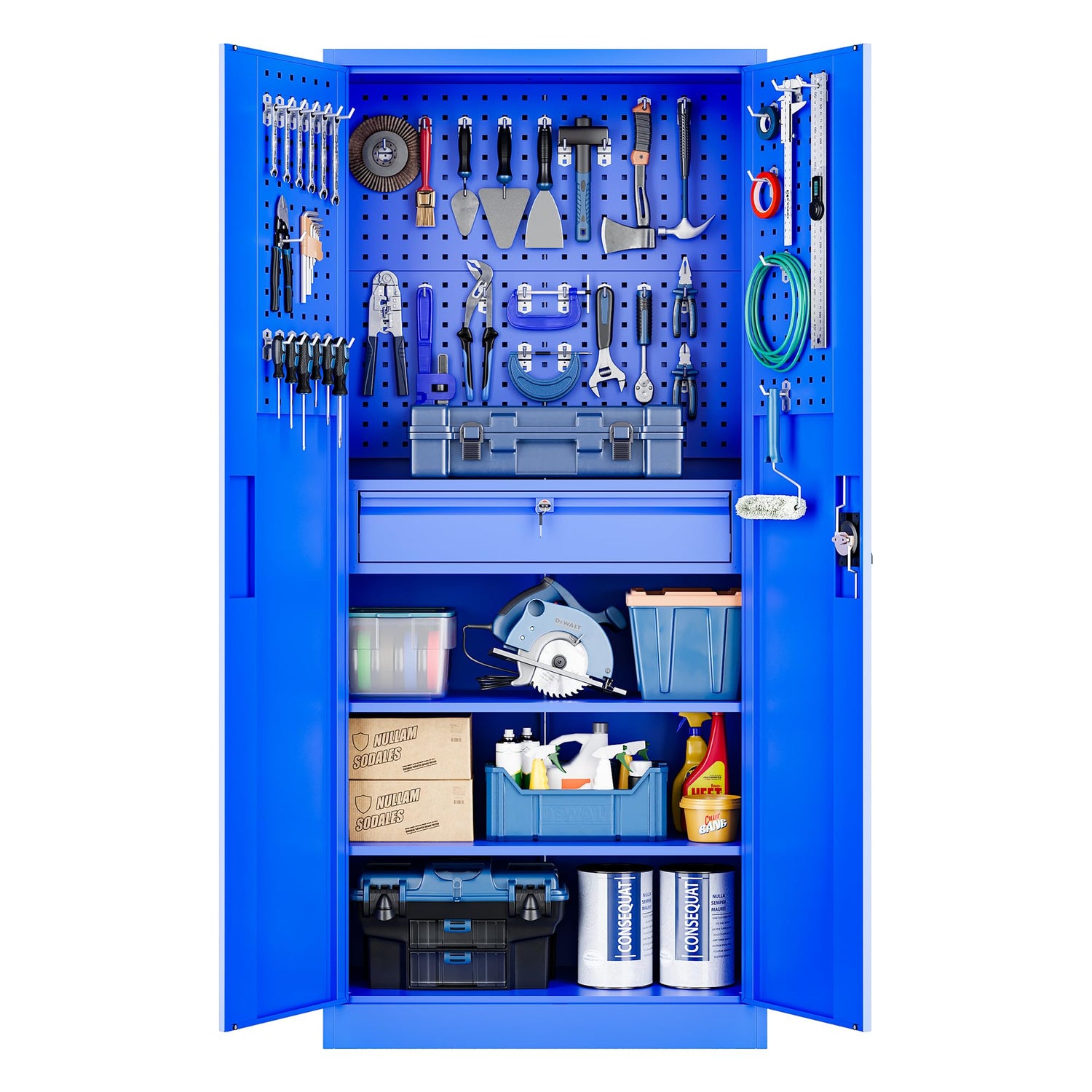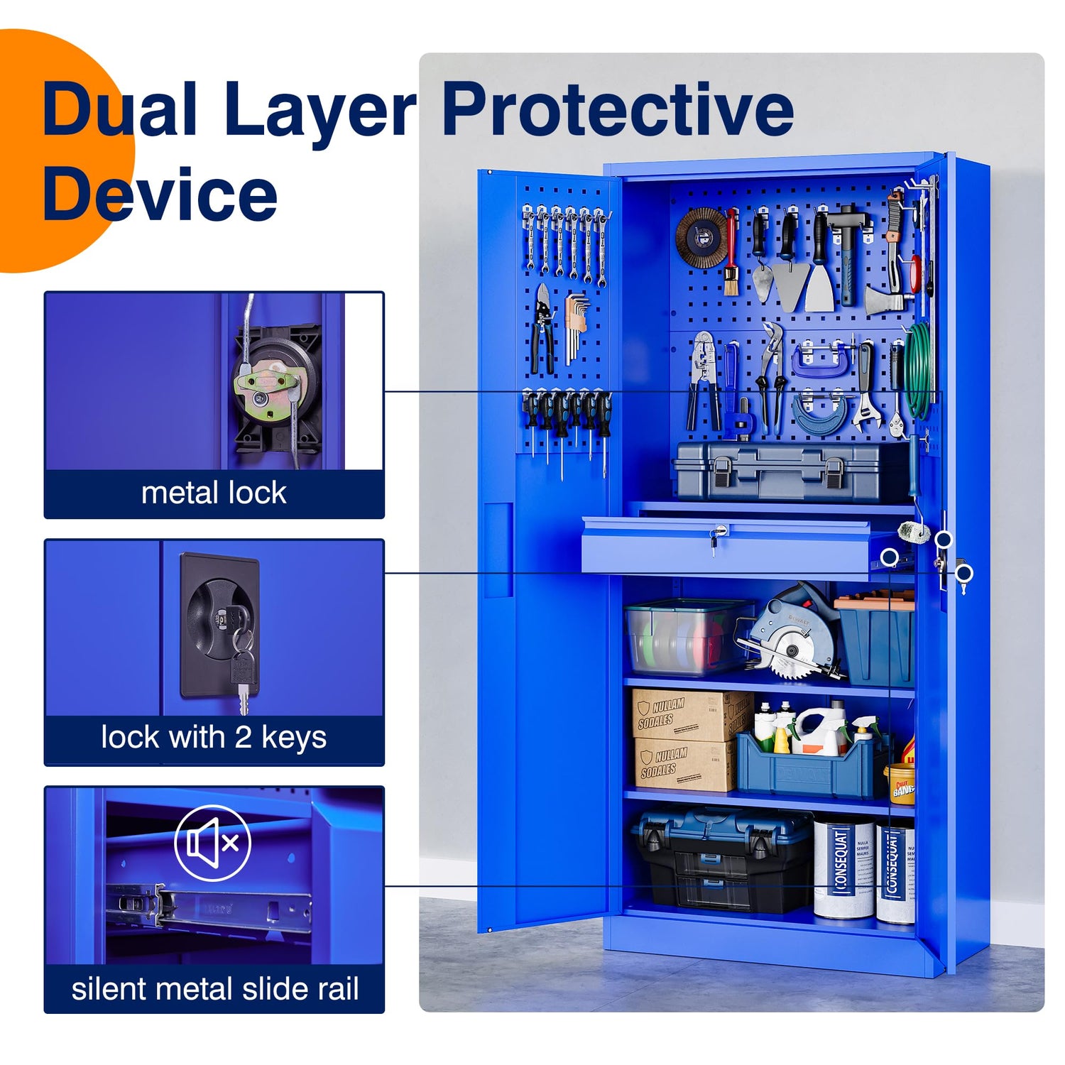 Yizosh Metal Garage Storage Cabinet with Locking Doors and Drawers, Heavy Duty Steel Tool Cabinet with Pegboard, 71" - Lockable Cabinets for Garage, Warehouse, Basement (Blue)