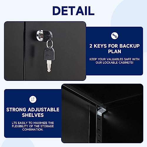 - 『Practical Design』:Our tall metal cabinet equipped with lock and 2 adjustable shelves to provide adaptability and convenience. High-grade lock picking to secure valuables, two keys are included. Regardless of what your storage needs are, you have the ability to create a unique storage space to suit them.
