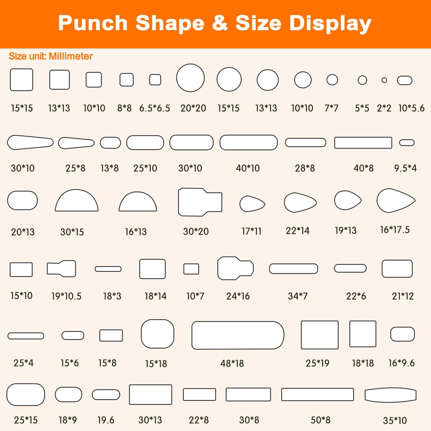 - 【Versatile Leatherworking Tools】With 56 pieces in this set and a wide range of shape styles, our multi-style shape leather hole punch tool is perfect for all kinds of handmade DIY leather crafts. Whether you're making belts, watchbands, furniture, or anything in between, our leather hole punch set has got you covered.