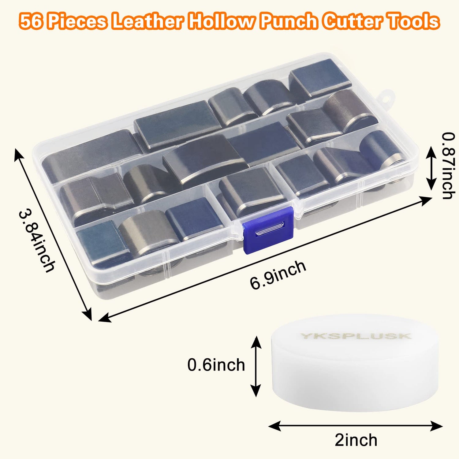 YKSPLUSK 56 Pieces Leather Hole Punch Set, Leather Cutting Dies Kit with Storage Case & Mat, Multiple Shapes Hole Punch Tool for Belts, Hollow Punch Cutter Tool for Handmade DIY Crafts
