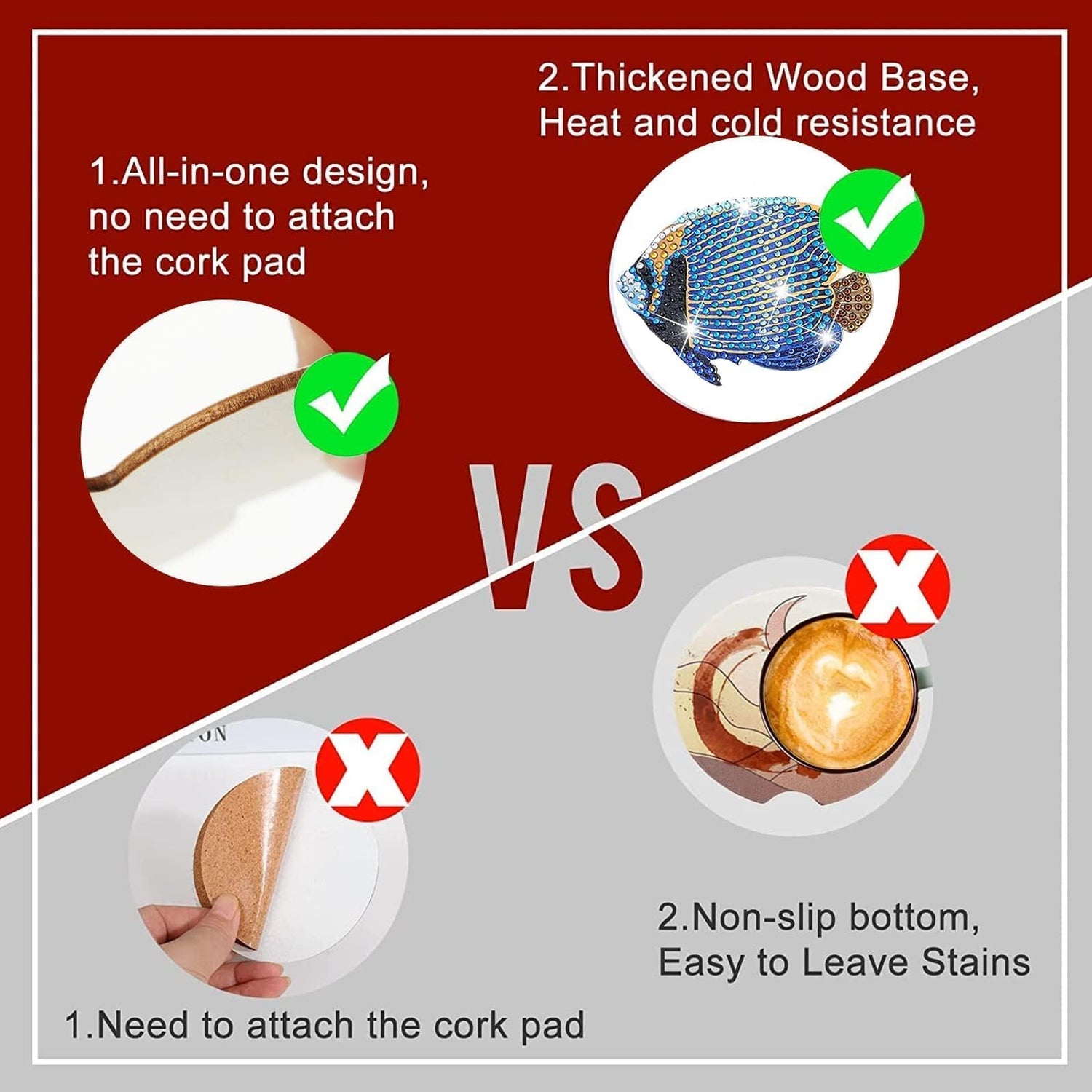- Reliable material: our tropical fish shape diamond painted coasters are made of high quality wood. The pattern and numbers are clear and easy to read. It has strong adhesion, which can firmly stick the rhinestones on the coaster and is not easy to fall off