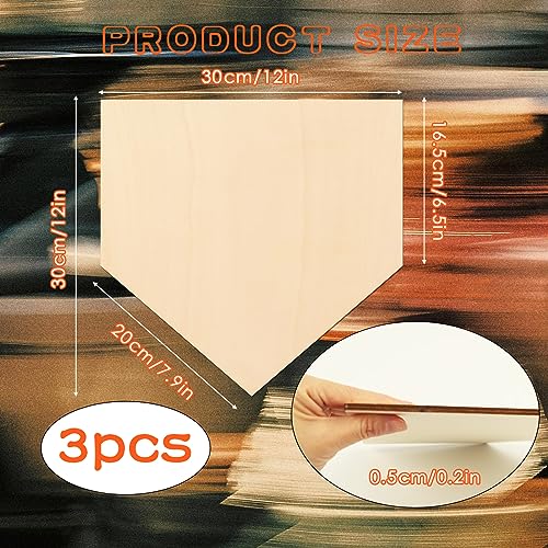 YLOLUL 3 Pcs Unfinished Wood for Crafts Wooden Home Plate Baseball Unfinished Wood Baseball Plaque Baseball Home Plate Softball Diamond Base