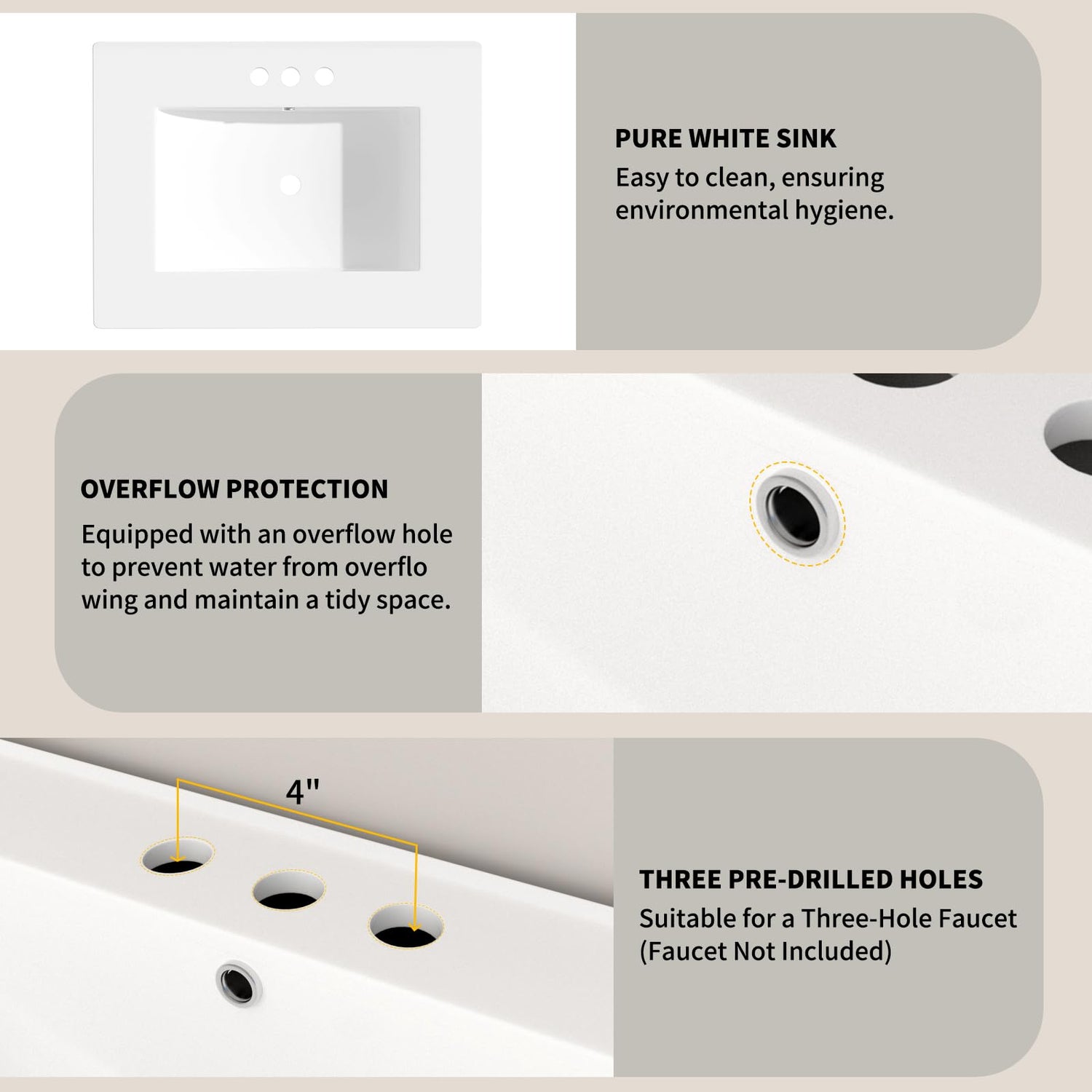 - 【Bathroom Vanity】The bathroom vanity sinl makes it easy to start fresh with a new bathroom solution. The bathroom sink cabinet is designed without an overflow hole to streamline cleaning.