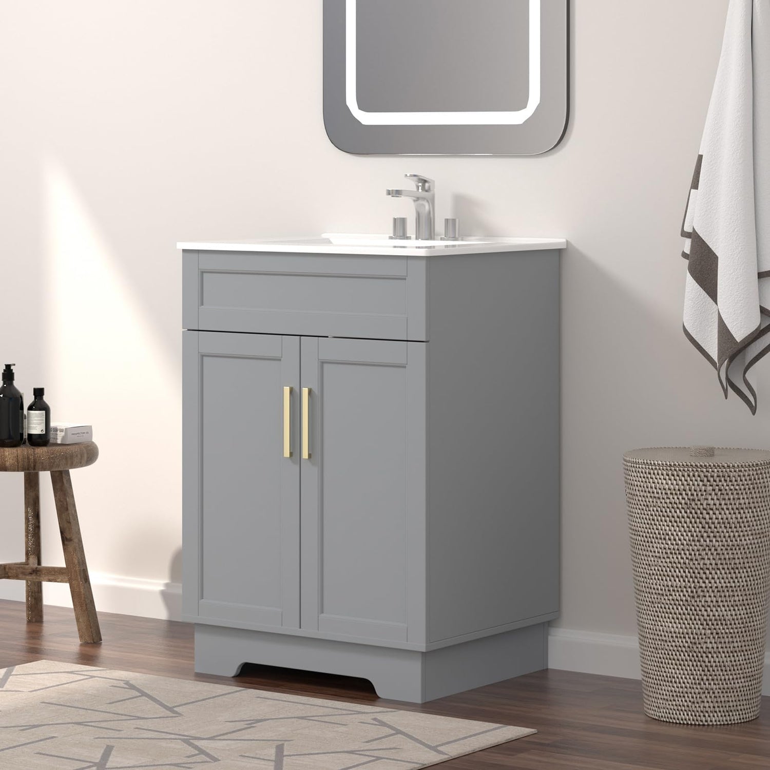 Ymise Bathroom Vanity with Sink, 24-Inch Bathroom Vanities Cabinet with Large Storage Space, Wooden Bathroom Sink Cabinet, Grey