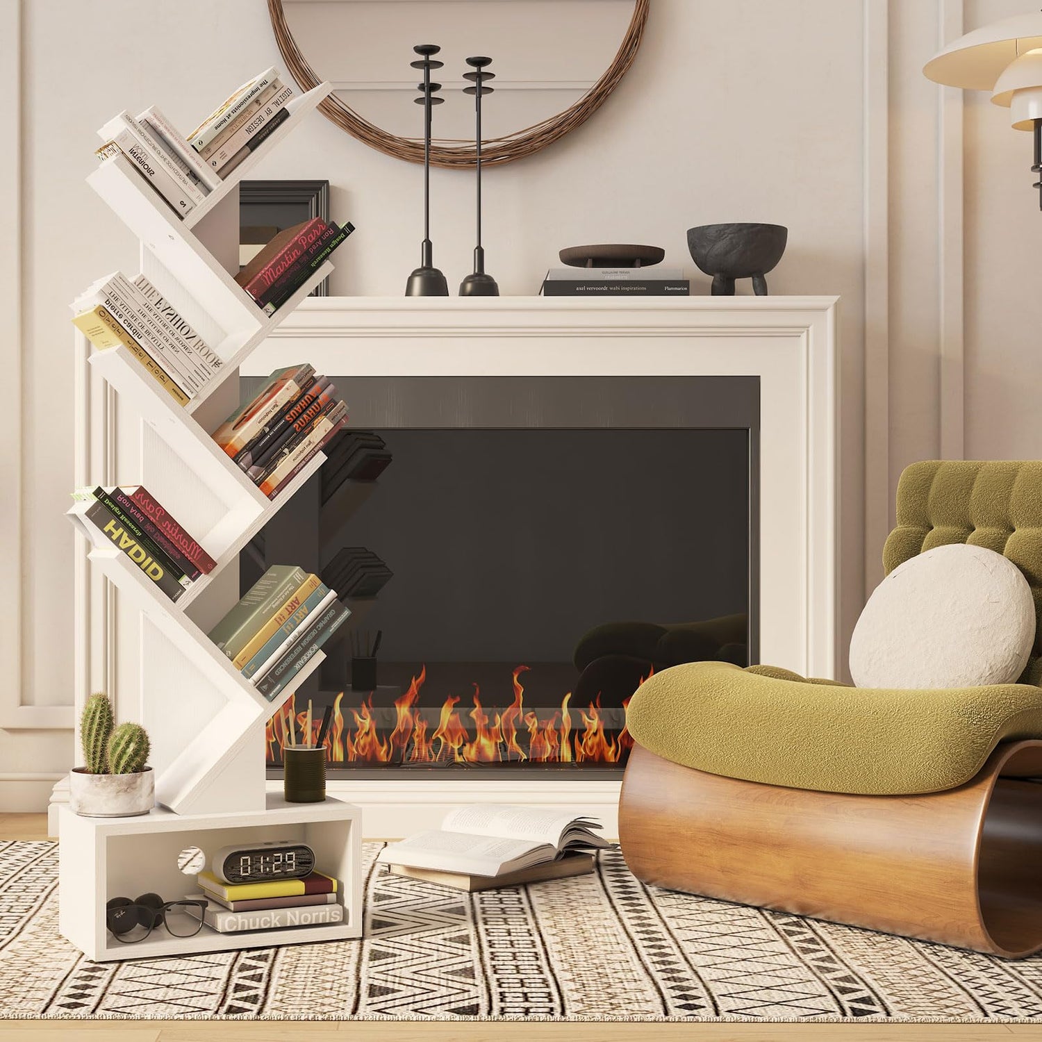 - Modern Design: It adopts a unique tree structure, the multifunctional partition design of the book case is perfect for displaying your books, CDs, magazines, video games, manga, decorations, novels, speakers and more. Available in a variety of colors, this storage rack is applied to any style of home decor