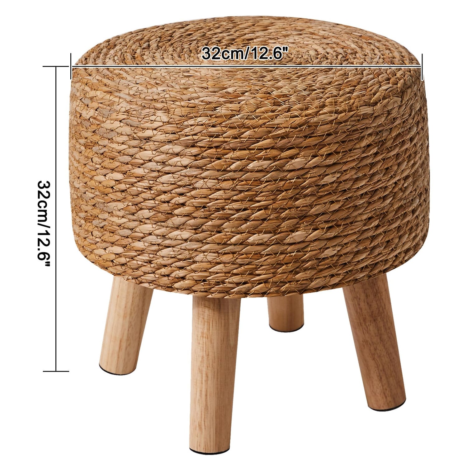 YMYNY Foot Stool Natural Seagrass Hand Weave, 12.6" Small Ottoman, Round Footrest for Living Room, Bedroom, Entryway, Change Shoes Stool, Non-Skid Wood Legs, Boho, Natural, UHBD027N