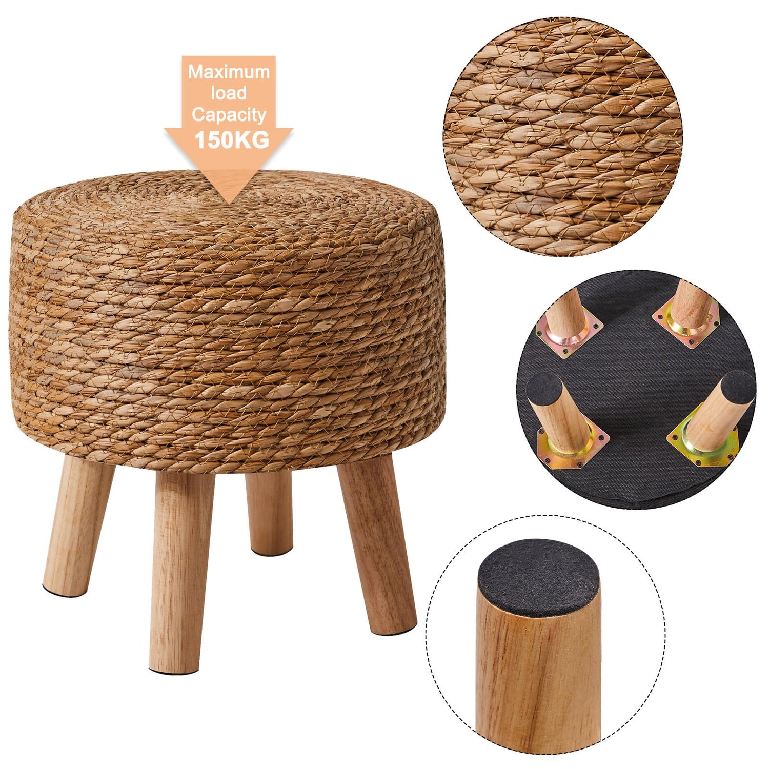 • Solid construction: Our footstools are all meticulously crafted with hand woven seaweed and solid wood frames. wooden frame and four solid New Zealand imported pine legs make the round stool lightweight but sturdy, with a long service life, capable of bearing 250 pounds
