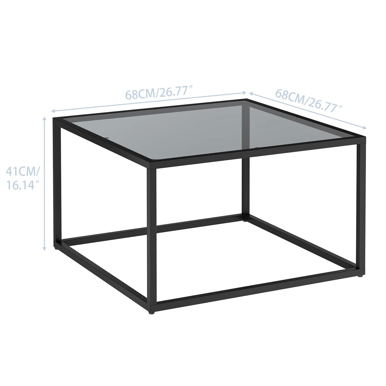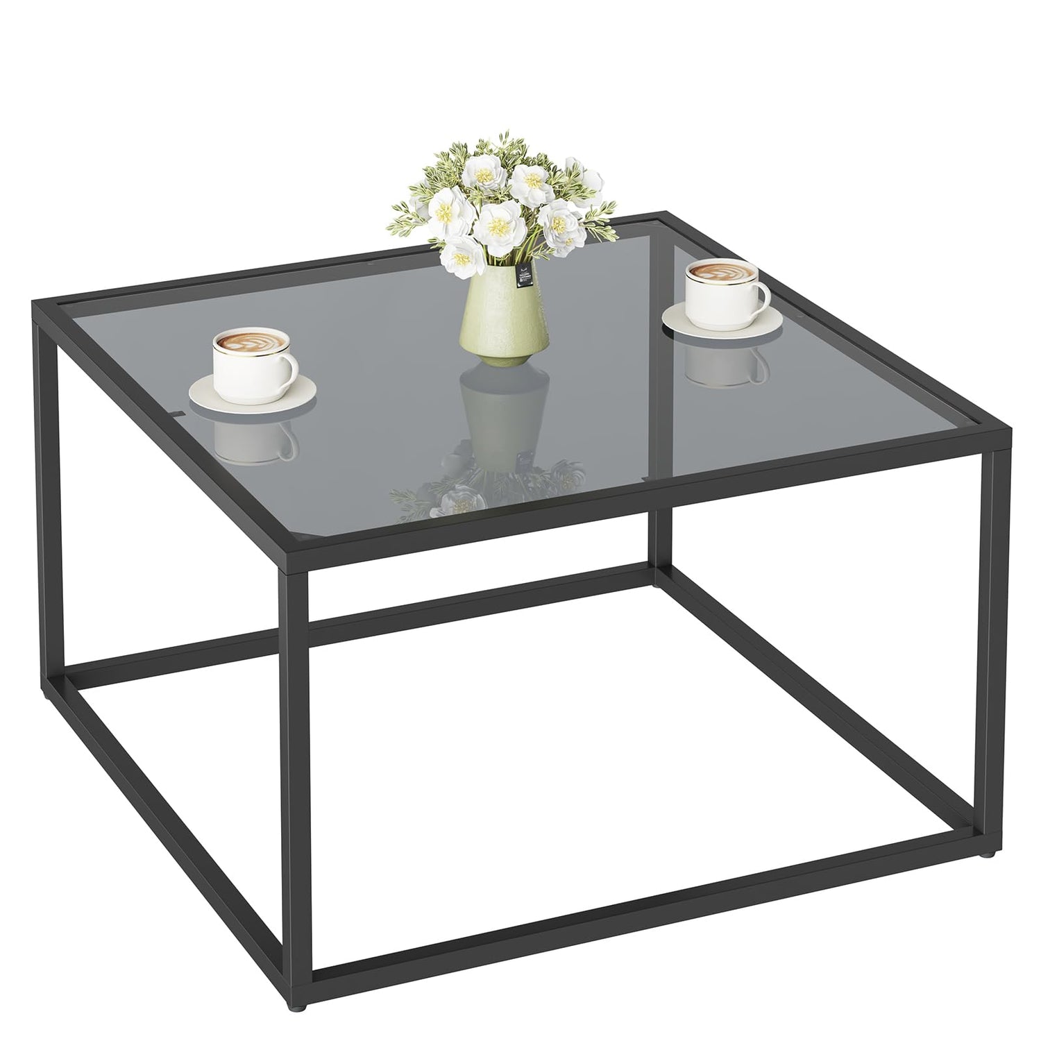 YMYNY Glass Coffee Table, Tempered Glass Square Coffee Tables with Metal Frame, Unique Modern Table for Living Room Home Office 26.77" x 26.77" x 15.75", Black Grey, UHCT001H