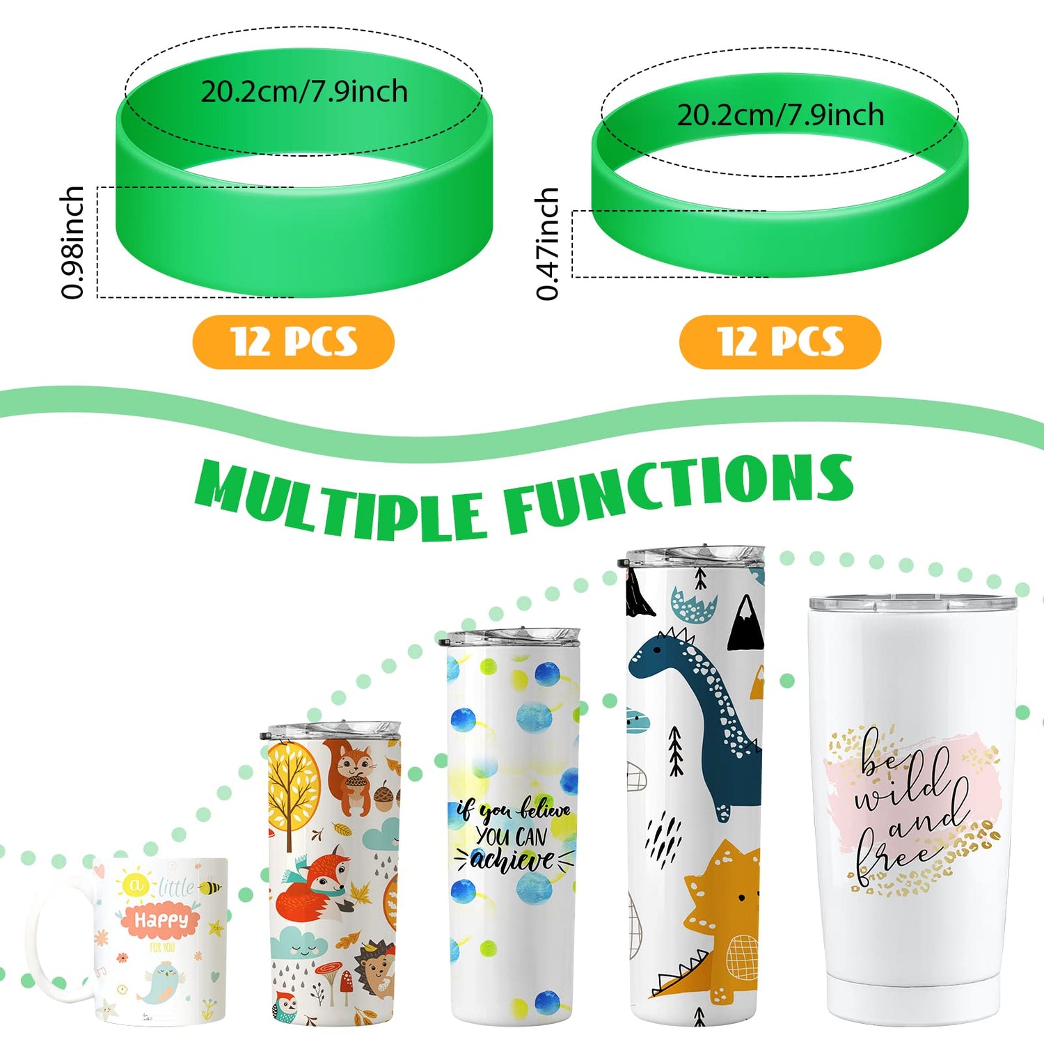 Yoande 24 Pcs Silicone Bands for Sublimation Cups Silicone Bands 2 Size Elastic Heat Resistant Thick Ring Rubber Bands Holder Tumbler Printing Band for Wrapping Cup Prevent Ghosting DIY Craft (Green)