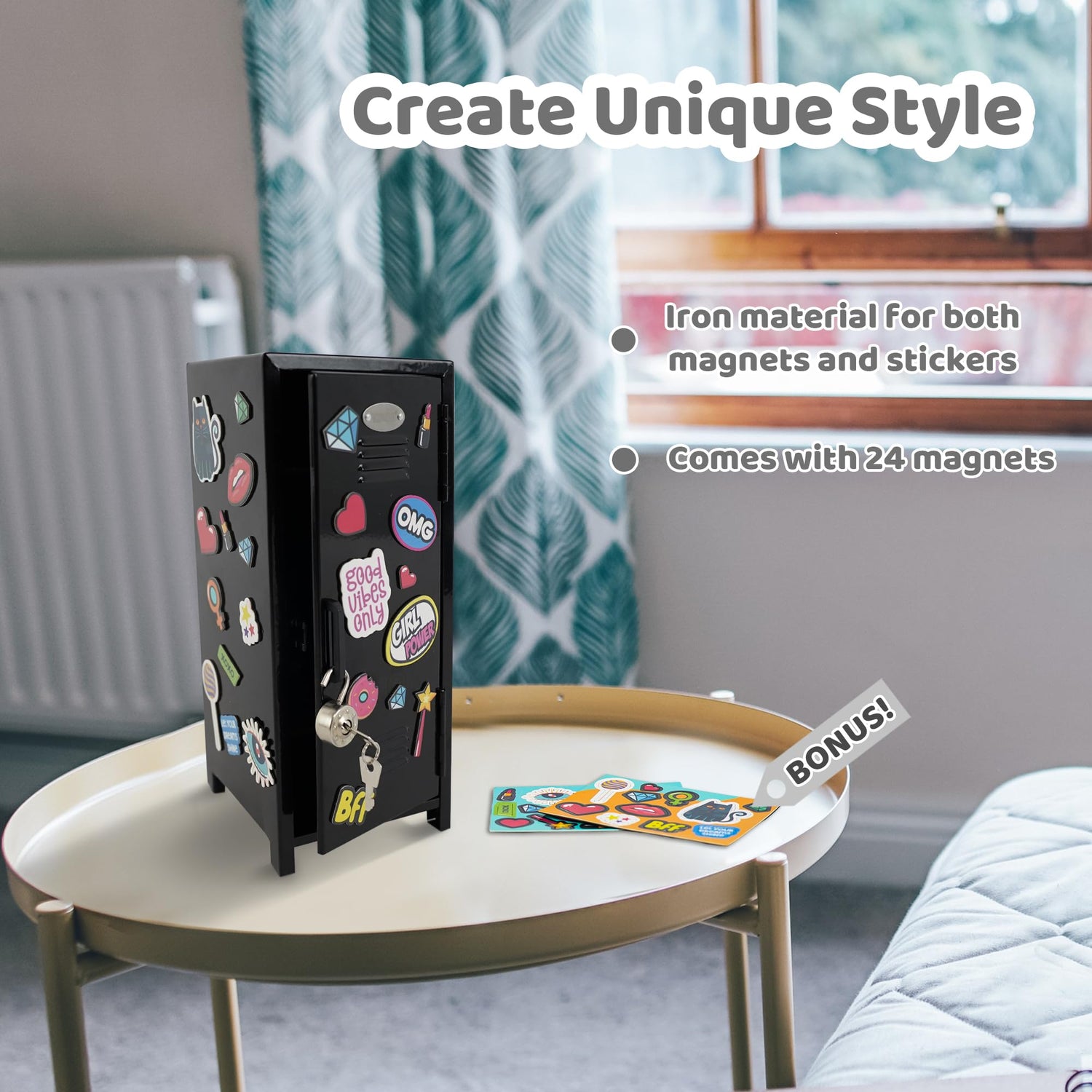 - Customizable Design: Includes 2 sheets of 24 magnets that you can use to decorate the locker with your own style; Also compatible with stickers and other accessories