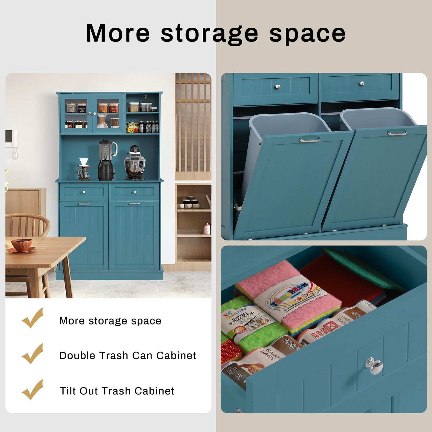 - 【Hidden Design】Our tilt out trash cabinet can be pull out and tilt to 30°, is a perfect storage cabinet with extra two drawers, saving space and keep tidy. It's also a best trash can, large capacity but effectively avoid odors, the pets will no more find their "loved trash can".