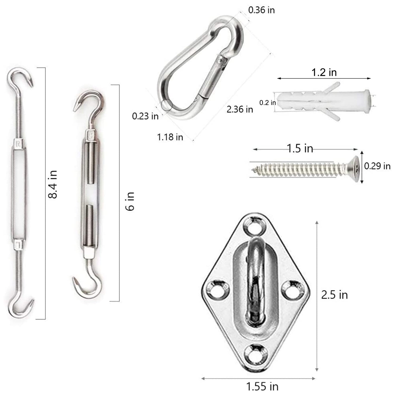 - Best Quality - Our Shade Sail Hardware Kit is made from premium 304 stainless steel with maximum durability. It is corrosion resistant and suiabale for garden and yard use.