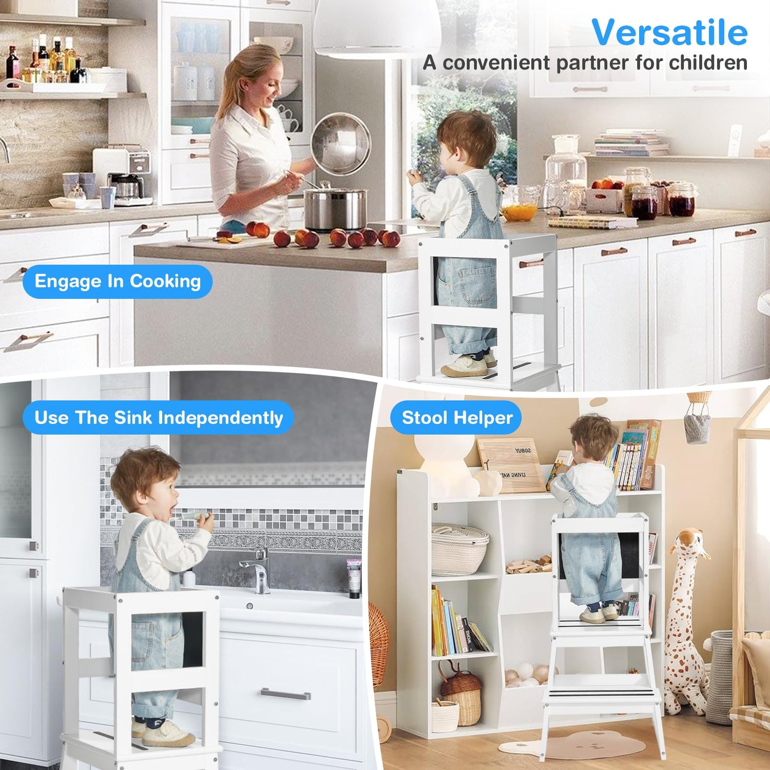 - 4-IN-1 MULTIPURPOSE STEP STOOL: Beyond the kitchen, this stool is perfect for the laundry area, helping your child wash hands and use the sink independently, suitable for ages 18 months to 6 years
