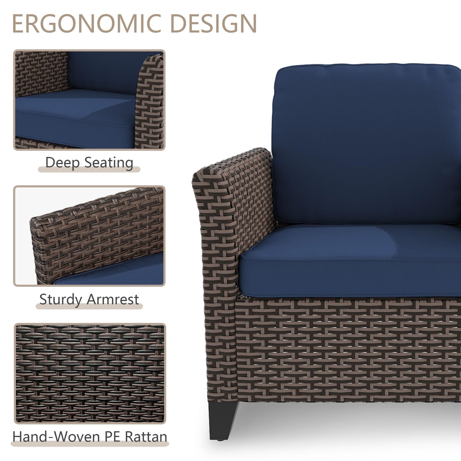 - Comfortable Seating: Our outdoor sofa is designed with 4-inch thick cushions, filled with high-resilience foam for lasting support. The backrest cushions are generously padded with a mix of cotton, foam, and doll cotton, offering a plush and comfortable experience that’s perfect for lounging and enjoying your outdoor space