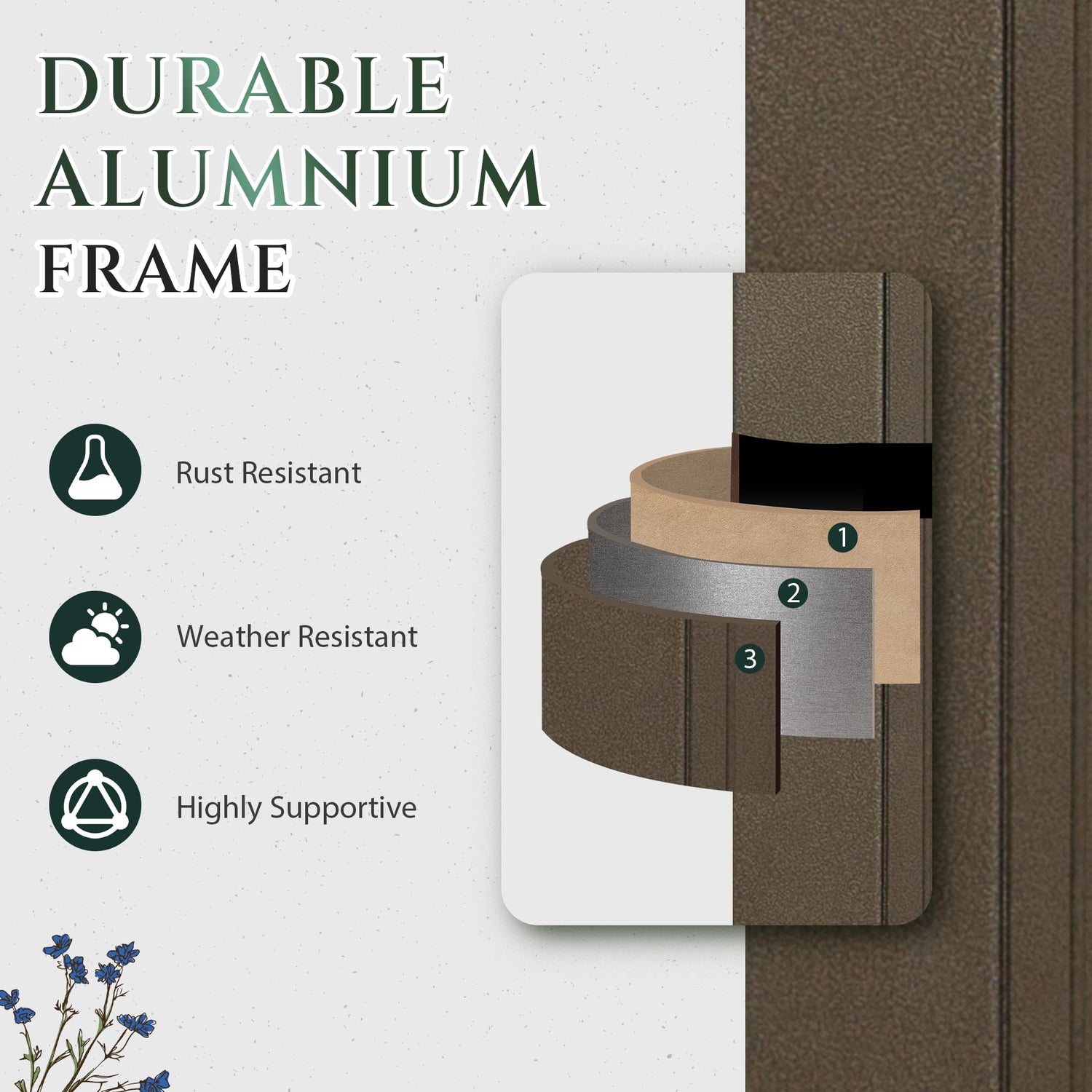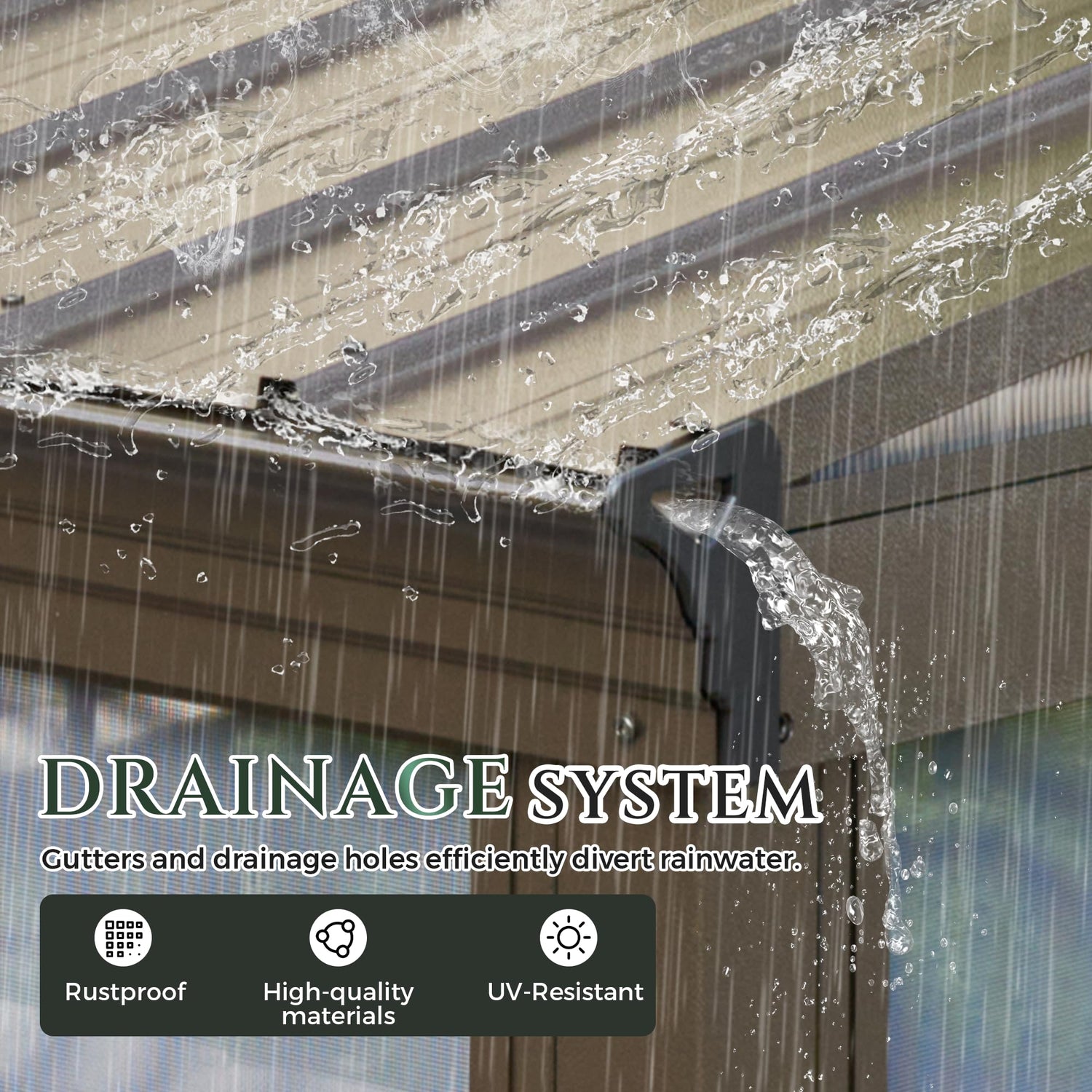 • 【Corrosion-Resistant Structure】Featuring a solarium-inspired roof with galvanized steel (integrated gutters for water runoff) and a powder-coated aluminum frame. This combination promotes minimal upkeep needs, maintaining its appearance season after season with simple rinsing