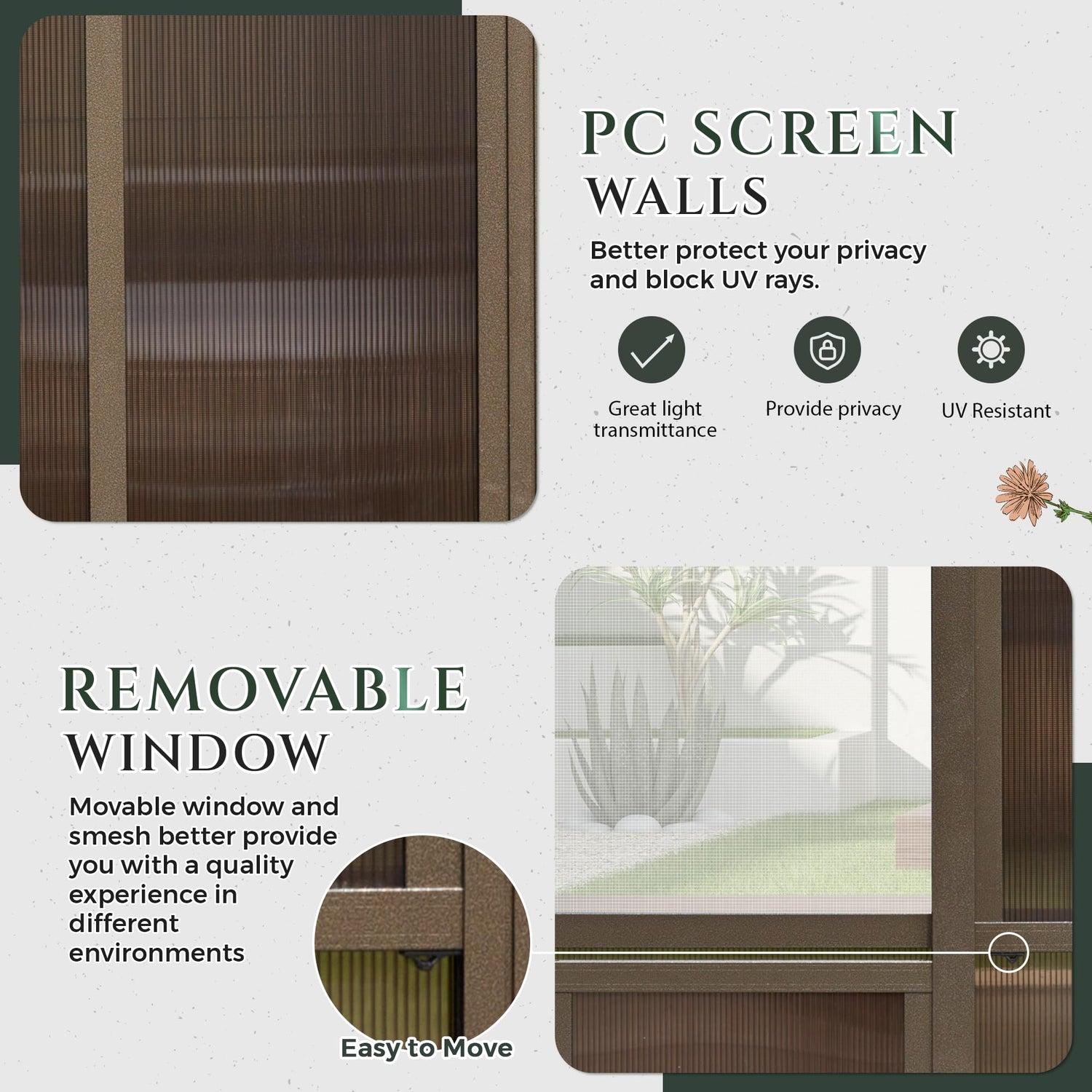 • 【Enhanced 6mm Textured PC Walls】Upgrade your space with vertically textured panels offering increased seclusion while helping filter sunlight. These thicker-than-standard panels provide durable performance in demanding weather, maintaining clarity and function through temperature shifts