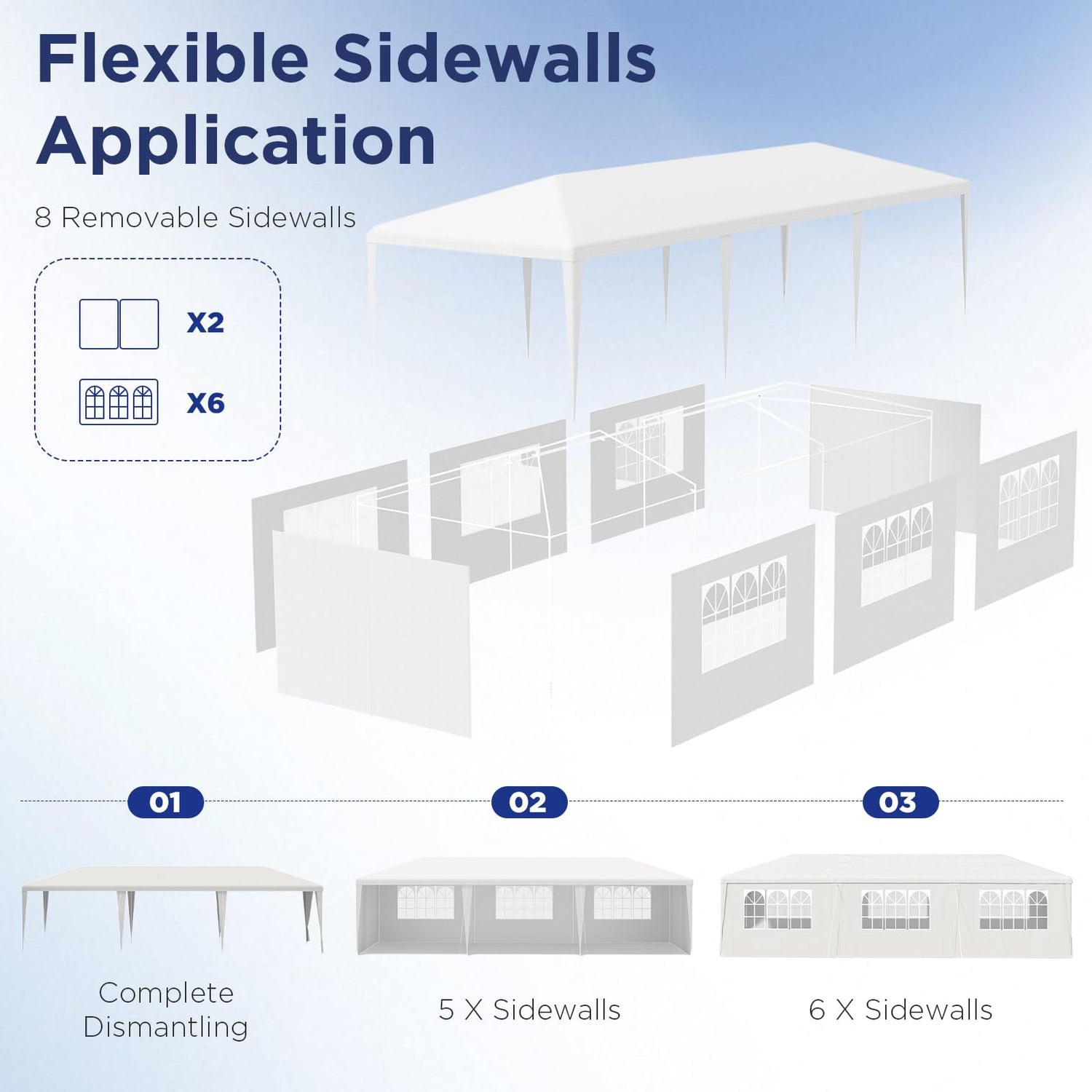 YOLENY 10x30 Ft Outdoor Party Canopy, Waterproof Heavy Duty Wedding Tent with 6 Sidewalls & 2 Zippered Doors, Event Tent for Birthday, Patio, BBQ, and Holiday Gatherings, White