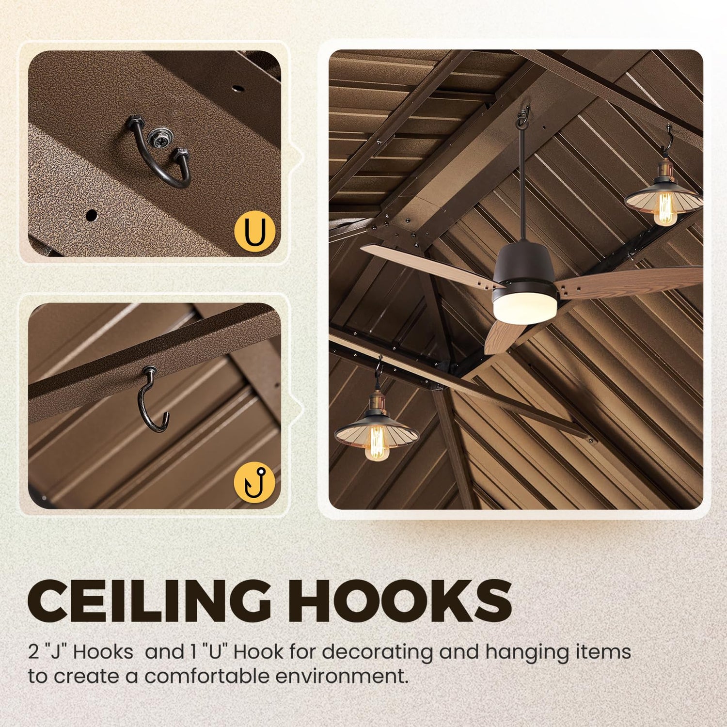 - 【MULTIPLE HOOK DESIGN】- Multi-purpose hook design aims to meet your many needs. It allows you to hang fans on hot summer days, or add beautiful lights and decorations. This gazebo can be a playground for children, a place for couples to date, or a great space for families to gather. It will certainly bring you unexpected surprises.