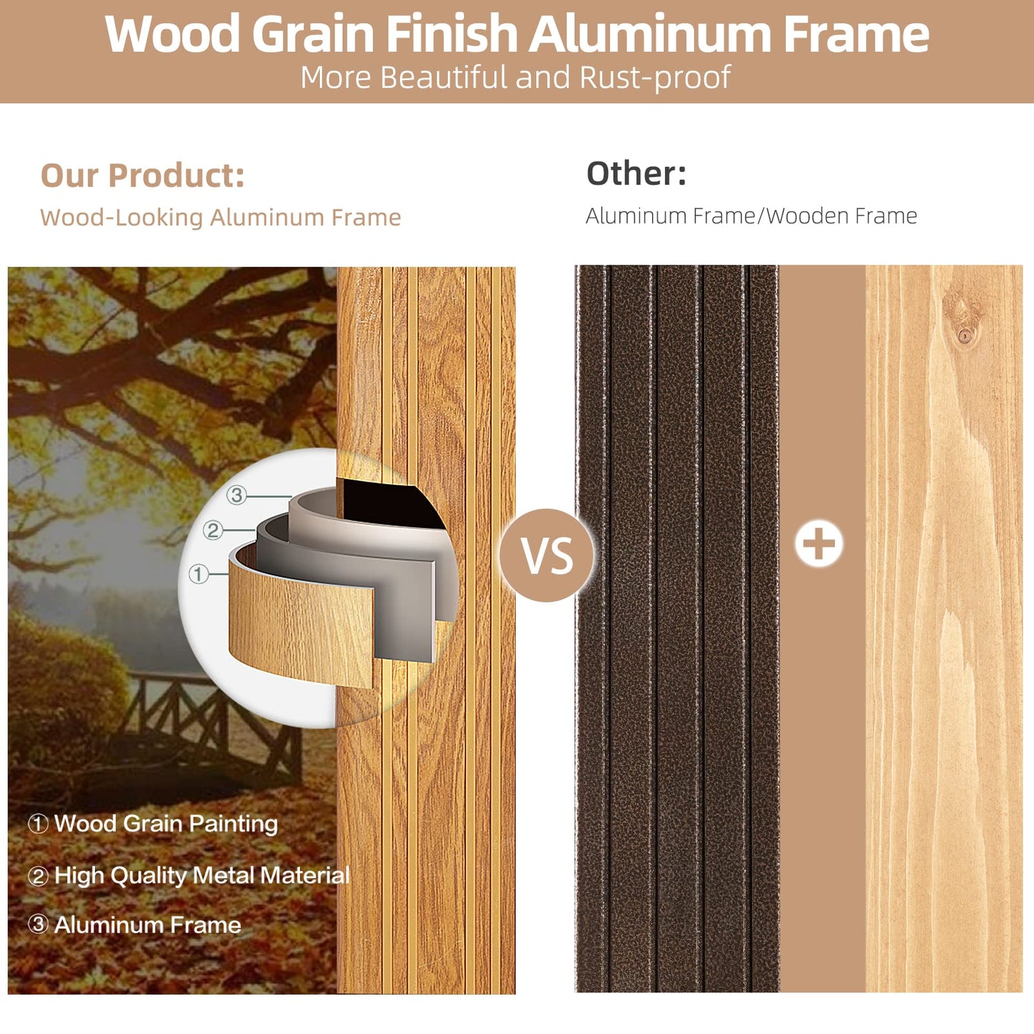 - ☀️【Wood Grain Frame】- This outdoor gazebo features a sturdy and durable aluminum structure with a natural wood-like appearance achieved through thermal transfer printing. This provides excellent protection against scratches, peeling, corrosion, and rust, ensuring a long service life.