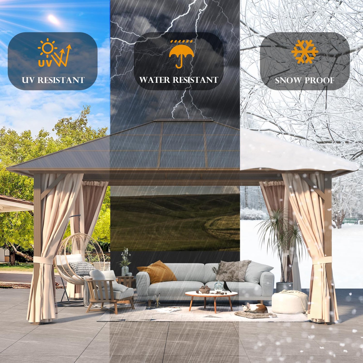 YOLENY 12'x14' Hardtop Gazebo, Outdoor Polycarbonate Roof Canopy, Aluminum Frame Permanent Pavilion with Curtains and Netting, Sunshade for Garden, Patio, Lawns