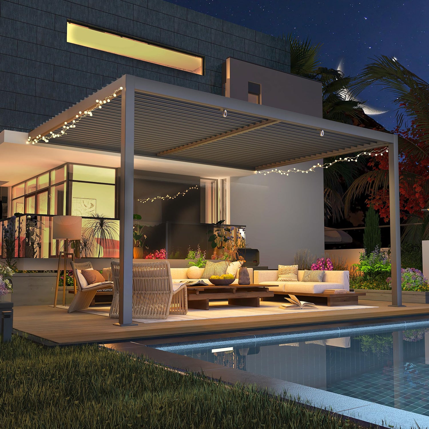 - VERSATILITY MEETS OUTDOOR ELEGANCE: YOLENY adjustable louvered pergolas are suitable for both residential and commercial environments, adapting to any setting and enhancing the space's sophistication. You can personalize your pergola to match your style, such as by adding LED lights or other decorative elements.