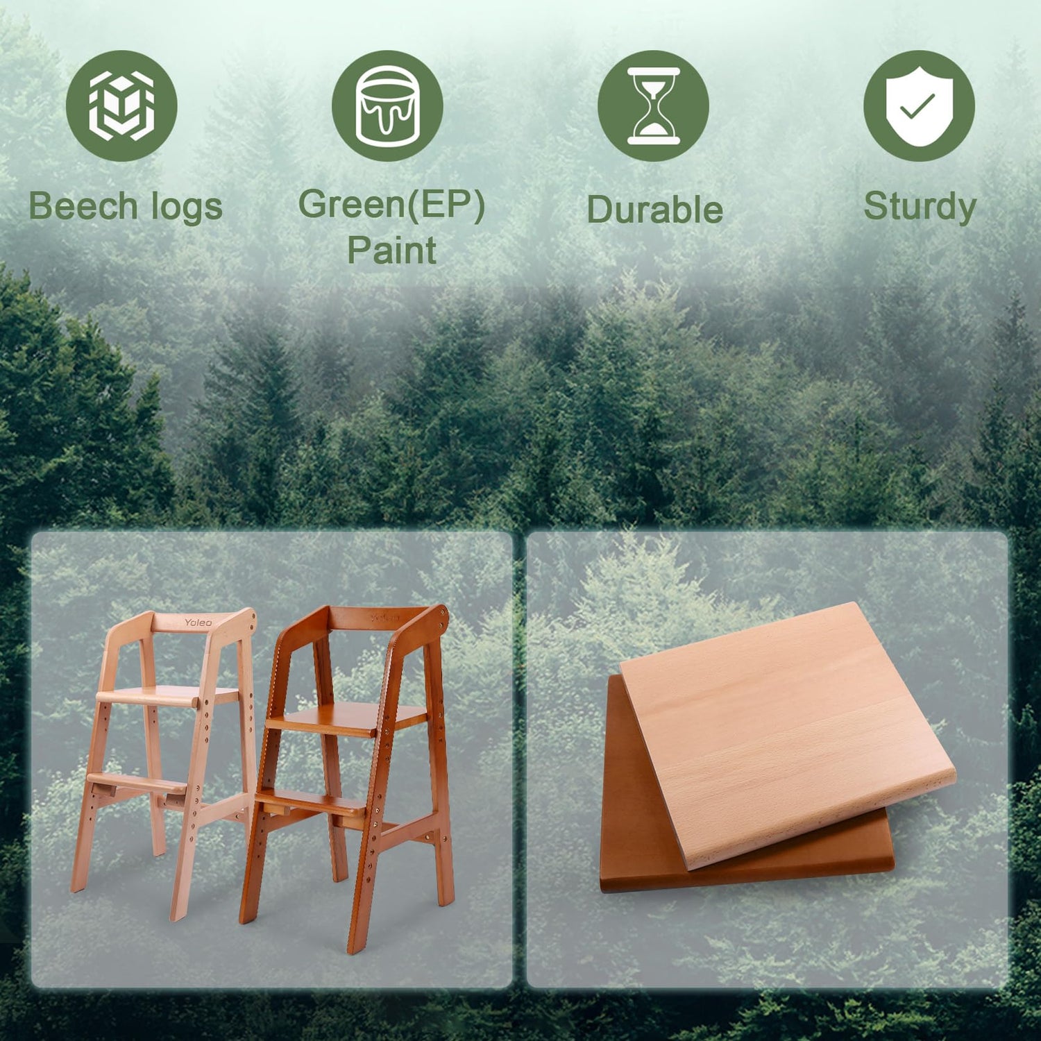 Yoleo Wooden High Chair for Toddlers to Teens, Adjustable Dining Feeding Chair with Steps Grows with Child, Max 60kg (Nut-Brown)