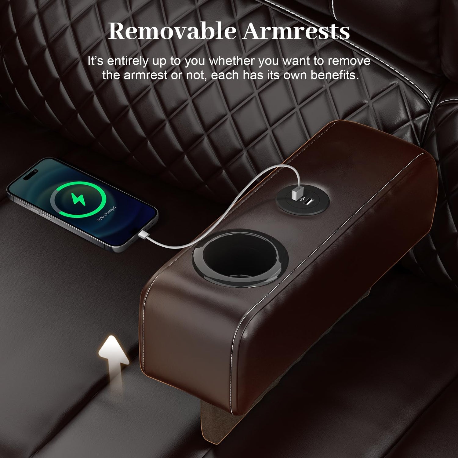- 【Removable Console(Loveseat)】Different from other reclining loveseat with console, the middle armrest of Our love seat recliner sofa can be removed at will. Installing the armrest can provide you with additional cup holders and 2 USB charging ports, which makes the entire The sofa has more functions. Of course, dismantling it also has advantages. You can be closer to your partner without obstruction, and the space is more spacious.