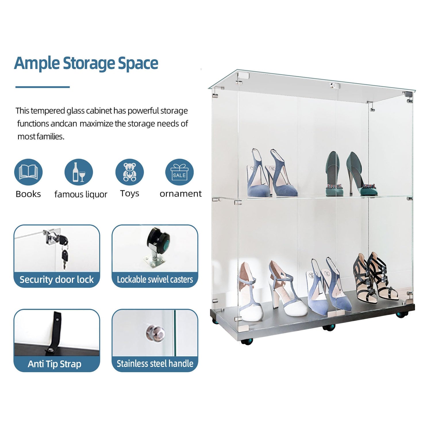 - 【Elegant & Functional Design】Measuring 34.17" (H) x 30.91" (L) x13.58" (W), this tempered glass cabinet offers a sleek and modern design, perfect for displaying your collectibles, decor, or valuables. With an overall weight capacity of 110 lbs, it combines style with practicality.