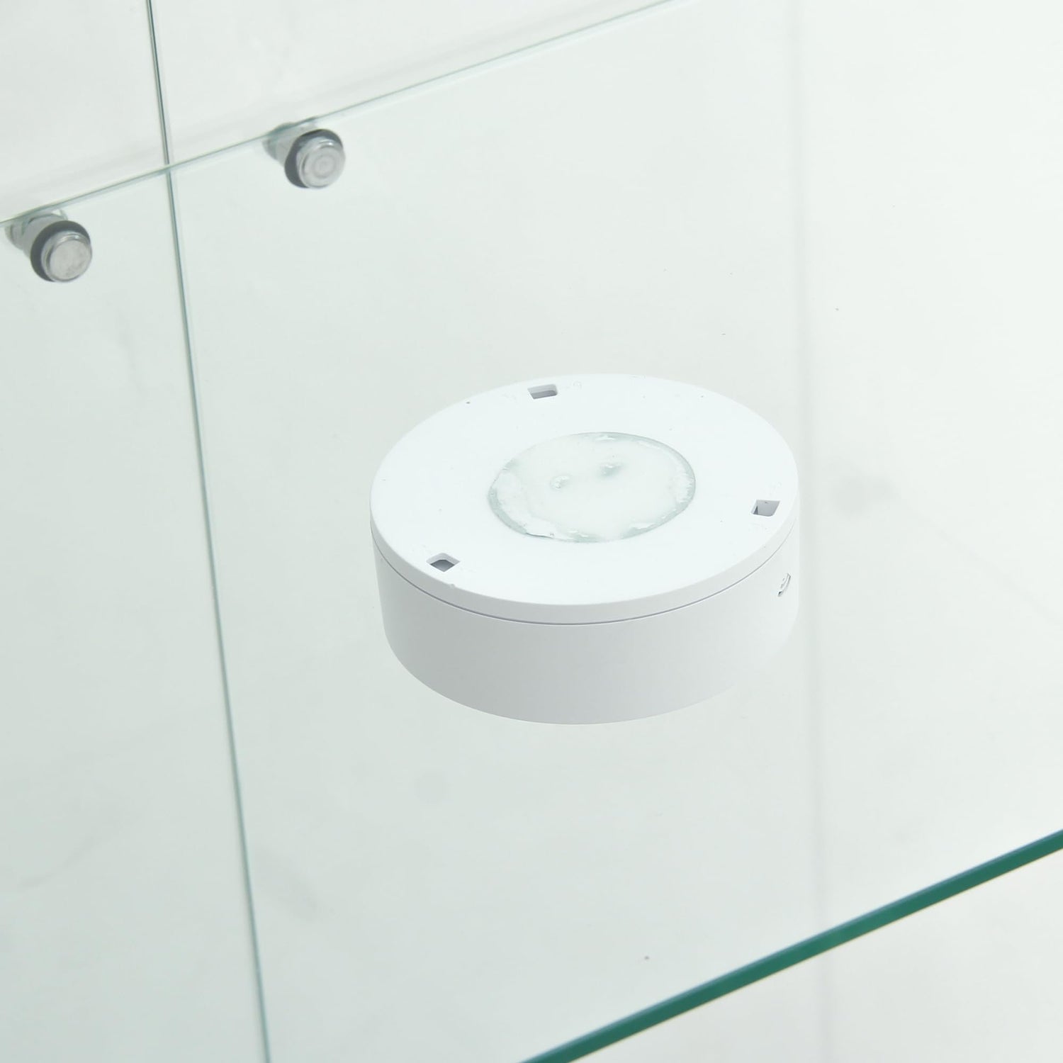 - 【4-Tier Glass Display Cabinet with LED Light】Peel off the double-sided adhesive tape and stick it on the top panel of the glass cabinet. A short press can adjust the four colors of warm light - red, green and blue, and a long press can adjust the light brightness. Take out the PVC insulation board, 13 colors of lights can be switched freely, light brightness can be adjusted freely. Warm light mode, light gradient mode and light gradient mode, and has a 30/60 timer automatic light-off function