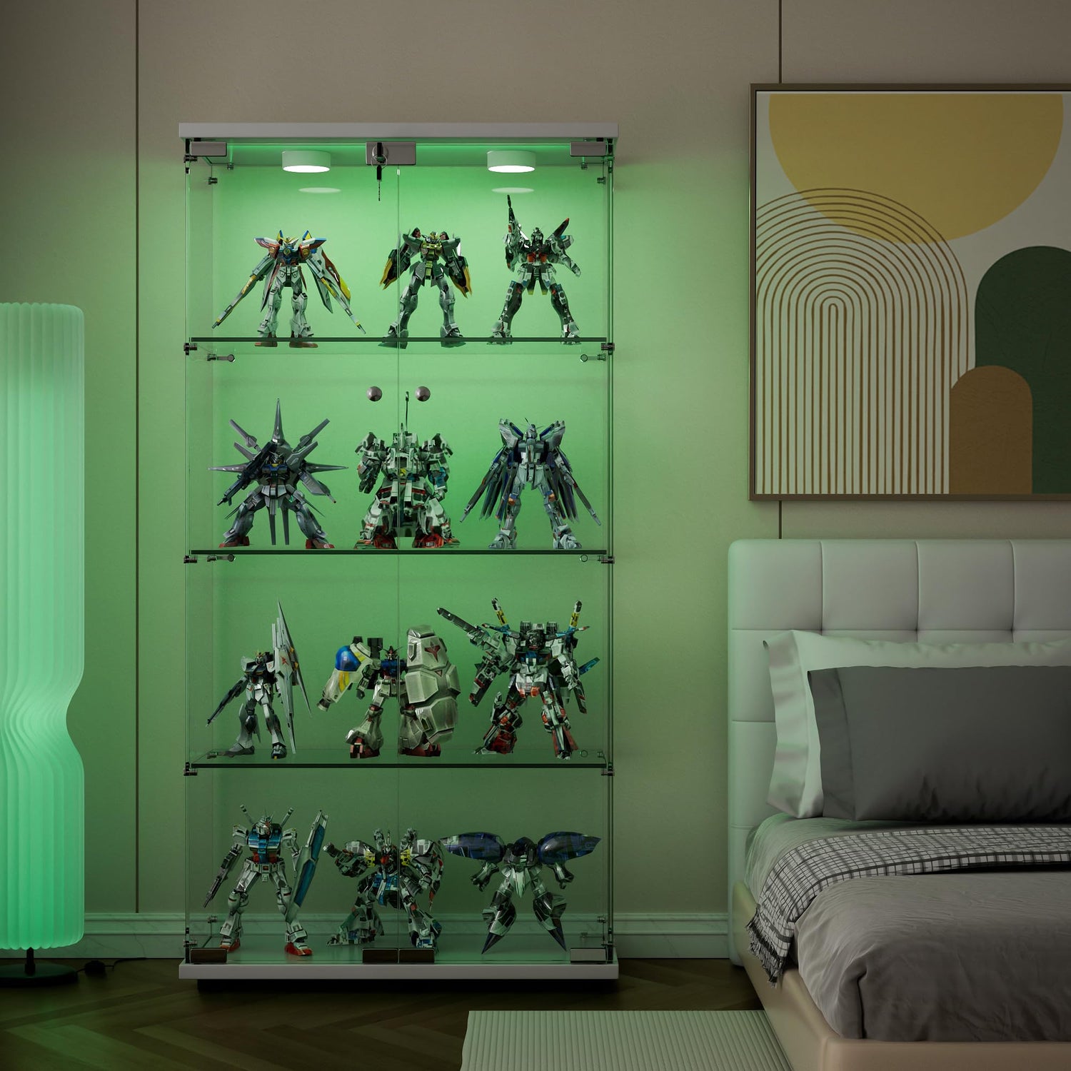 - 【Sufficient Capacity and Strong Load Bearing】Add LED lights to make your exhibits look more colorful and colorful. Each glass shelf level can withstand a maximum weight of 20pounds, The upper and lower decks can hold 84 pounds, great for displaying books, photos, medals, action figures, wine bottles, toys, artwork, decorations