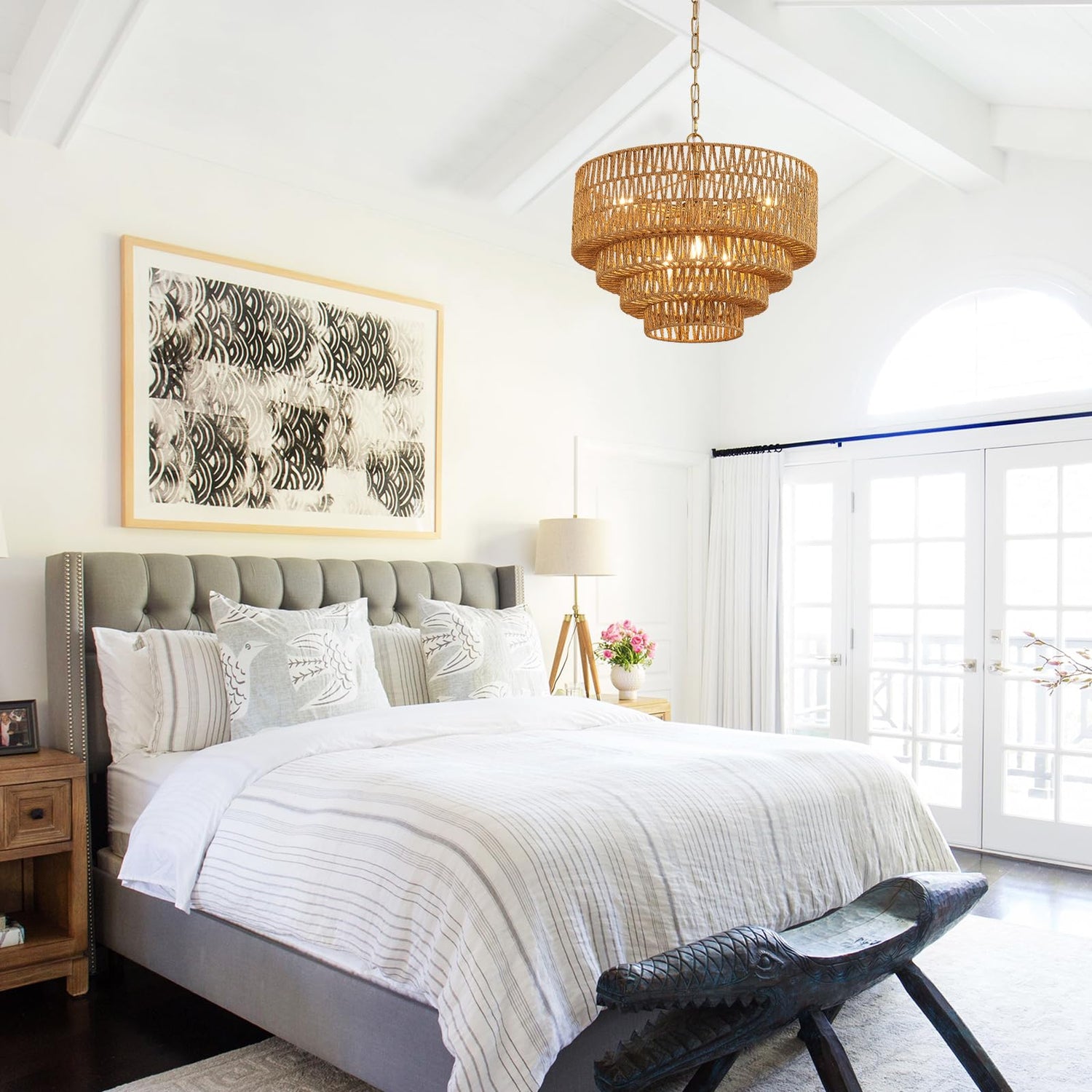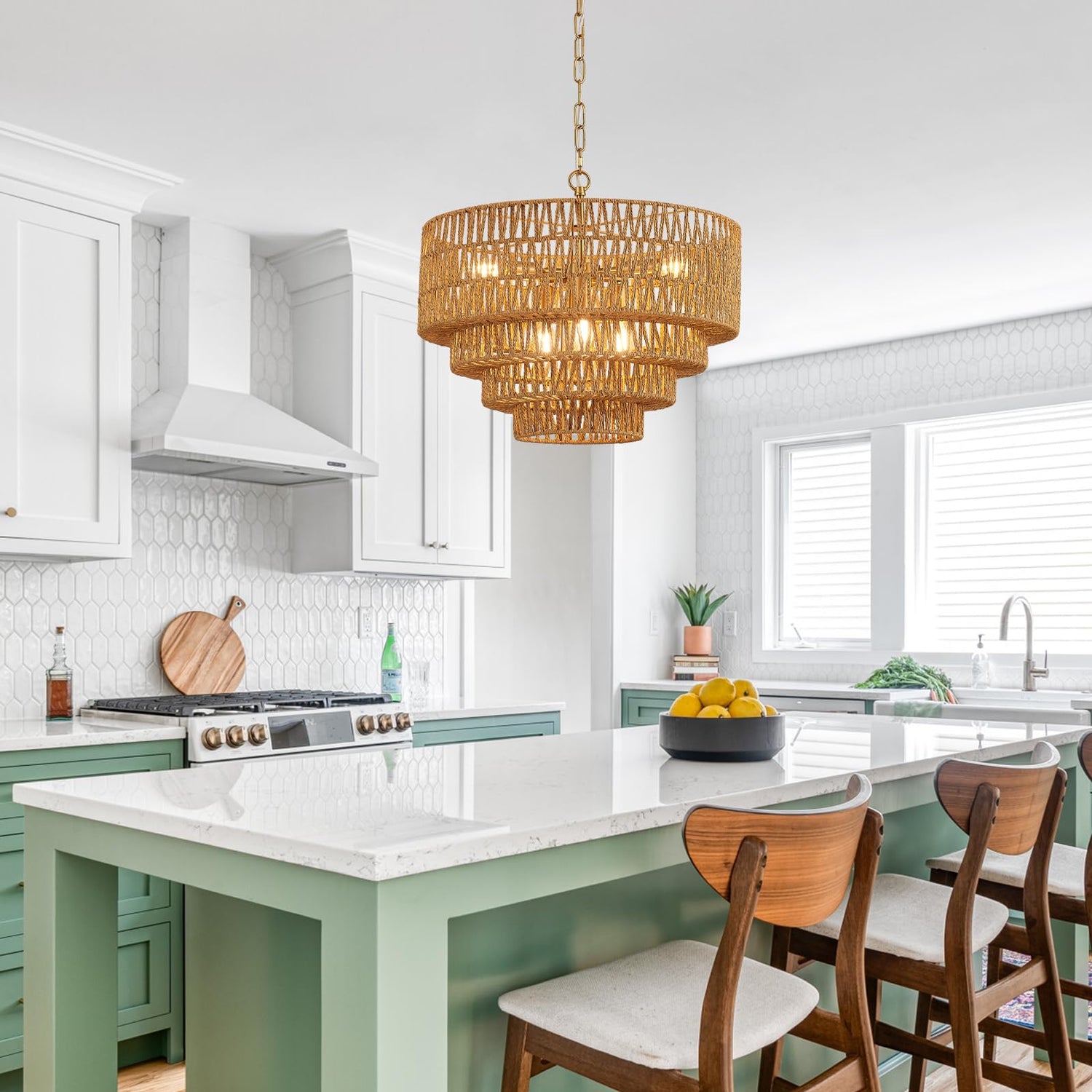 - 【Hand-Woven Rattan】The rattan chandelier is a stunning fusion of craftsmanship and design. The rattan weave allows the light to gently filter through, casting beautiful shadows. Experience the artistry of handwoven rattan, which adds a natural touch to your decor.