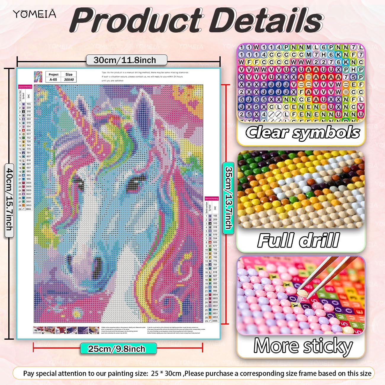 YOMEIA 5D Diamond Painting Kits for Adults&Beginner Full Drill Unicorn Diamond Art Paint with Round Diamonds DIY Gem Painting Kit for Home Wall Decor(11.8x15.7in)