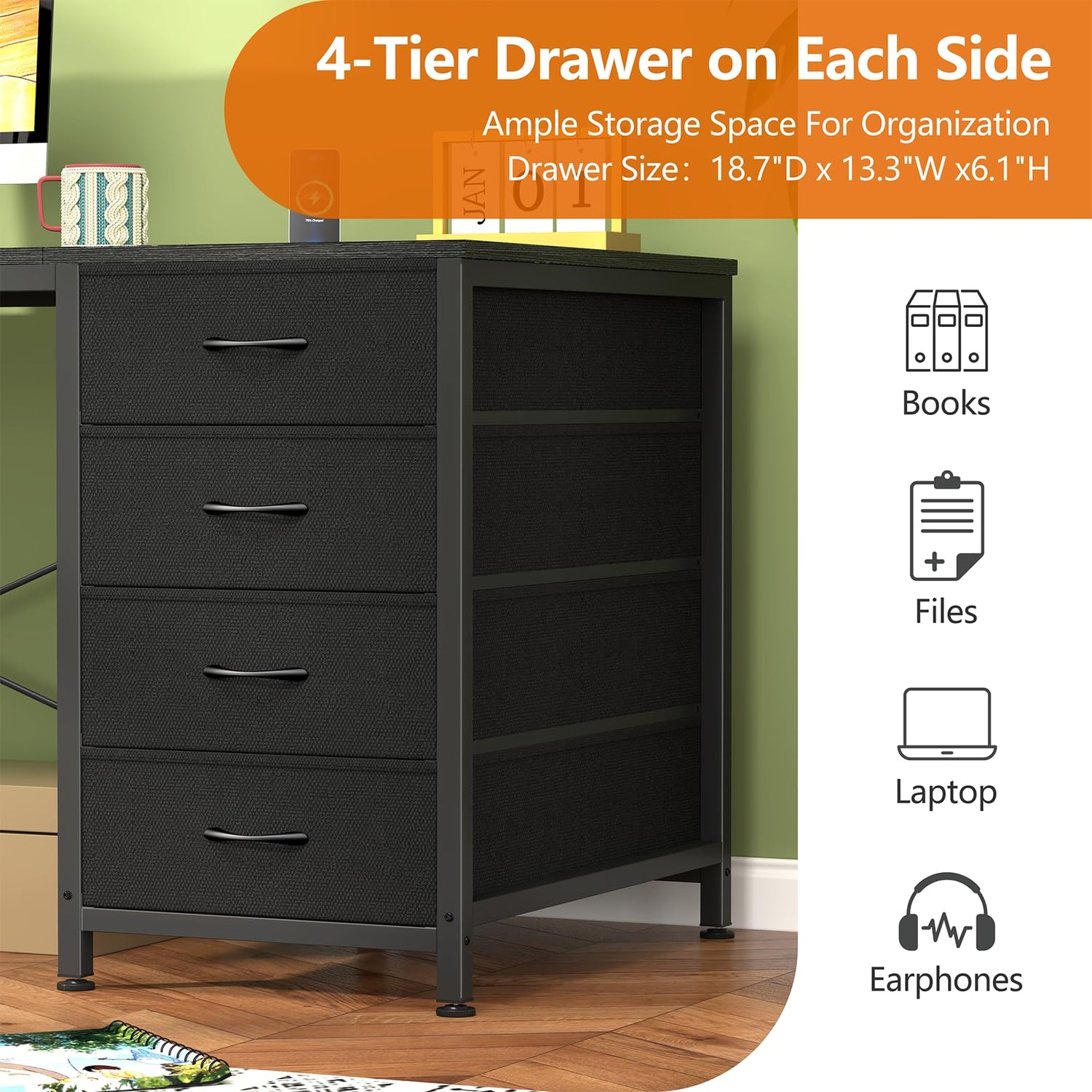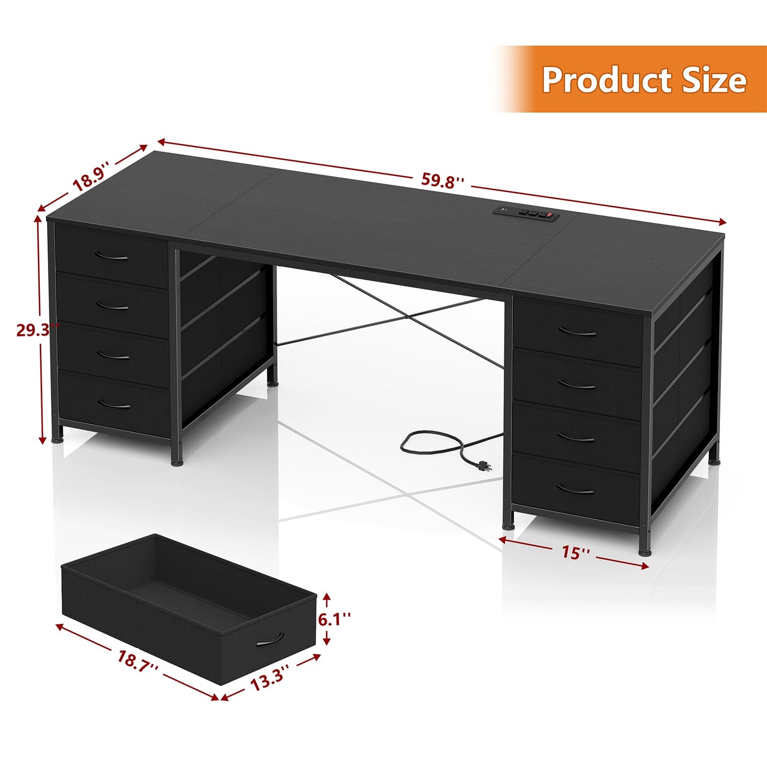 YOMILUVE 60 Inch Computer Desk with 8 Drawers, Home Office Desk with Power Outlets, Work Study Gaming Desk with 8 Fabric Drawers, Black