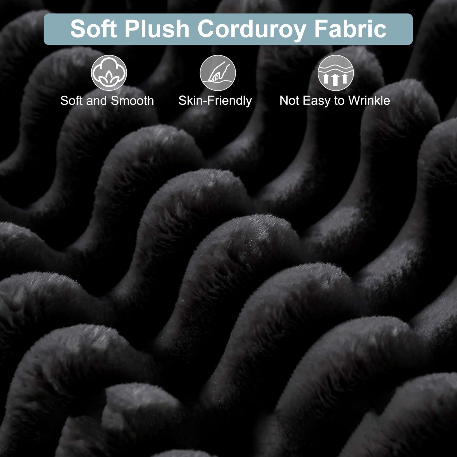 Yomsum 184'' Living Room Sectional Couch with Double Layer Black Plush Corduroy Fabric, 6 Seater Boneless L Shaped Cloud Couch in a Box, No Assembly Modular Sectional Sofa Bed with Ottoman