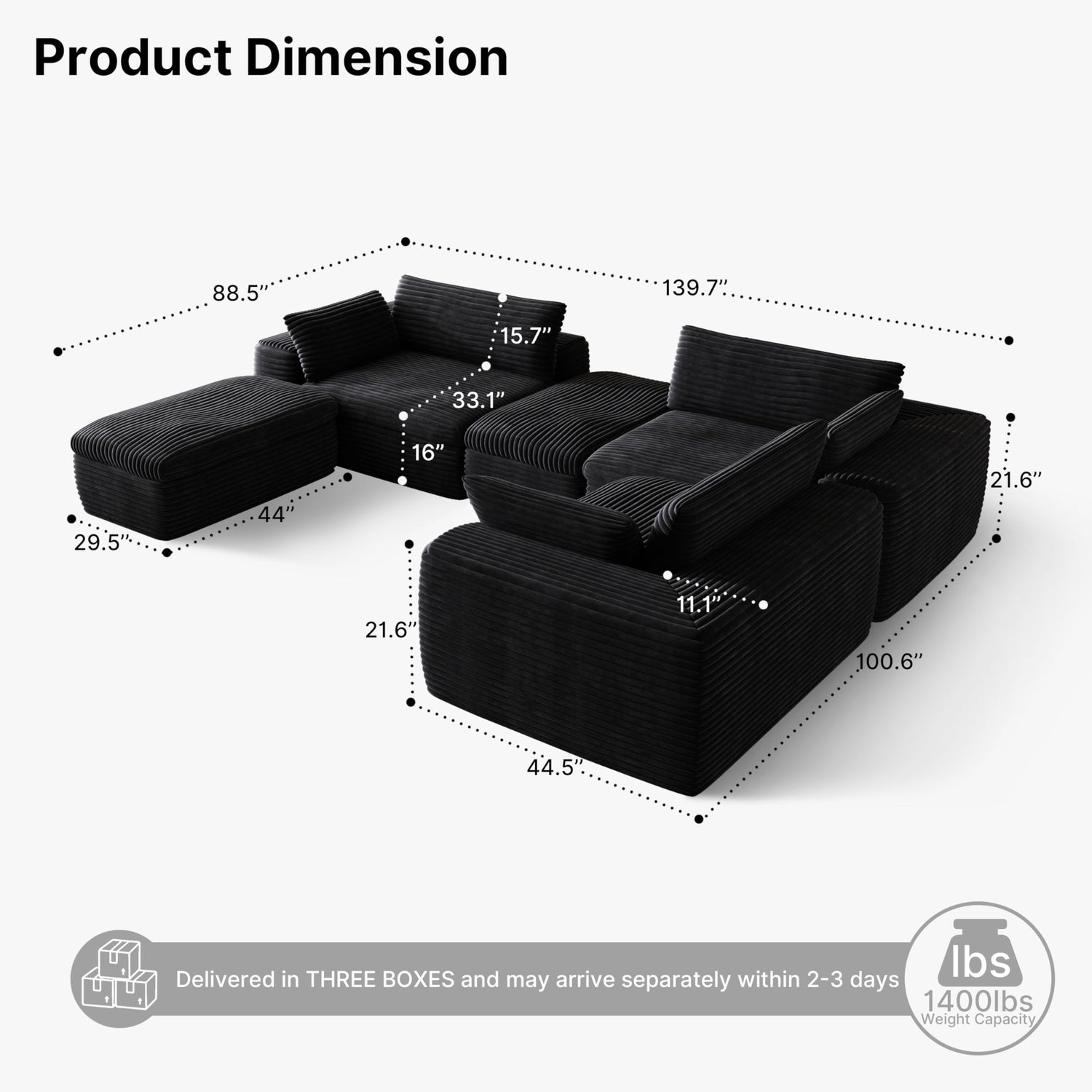 - No Assembly: No tools required. Effortless setup modular sofa couch in 5 minutes with 3 steps: Unpack the box, unzip the protective bag, and watch the compressed corduroy sofa self-expand. Gently pat each section, and sofa regains full plushness within 72 hours. (Note: Ships in 2 separate packages that may arrive at different times.)