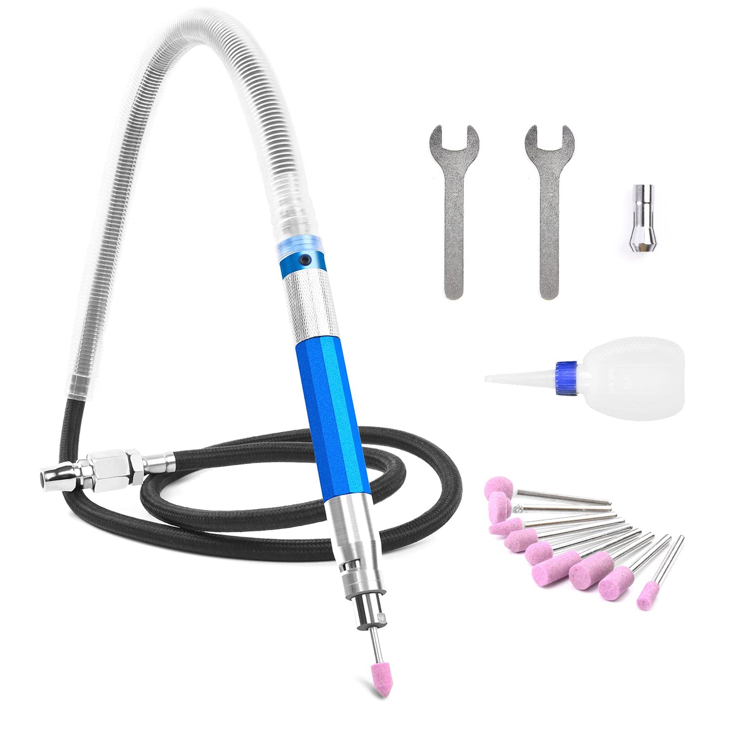 YON.SOU. 18Pcs Pencil Die Grinder Air Tool 1/8" Pneumatic Engraving Pen 70,000 RPM Air Micro Pencil Grinder Kit