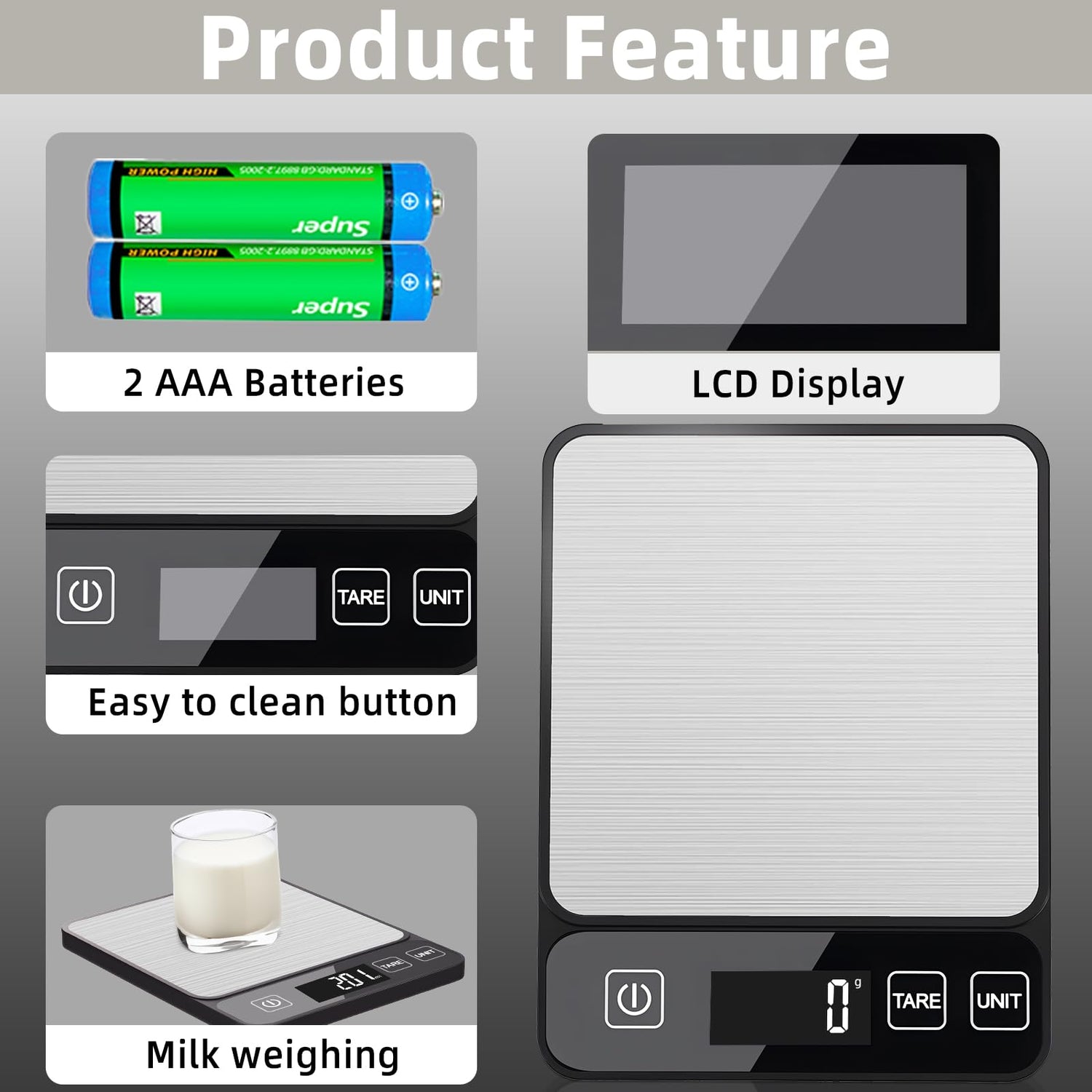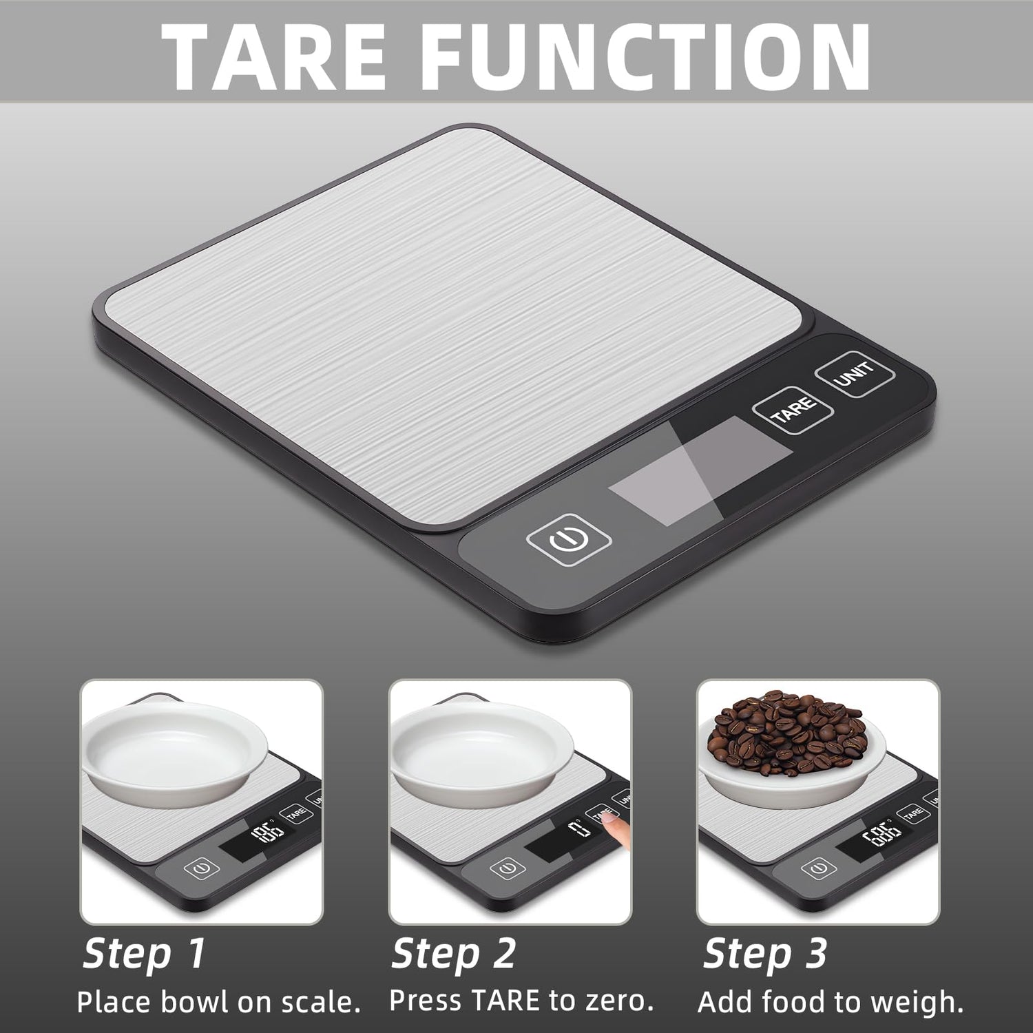 - Visibility andFunctionality: The LCD display with backlight makes reading measurements effortless, even with flour-covered hands. Featuring instant tare function for containers, this food weight scale is designed by culinary professionals for serious home cooks