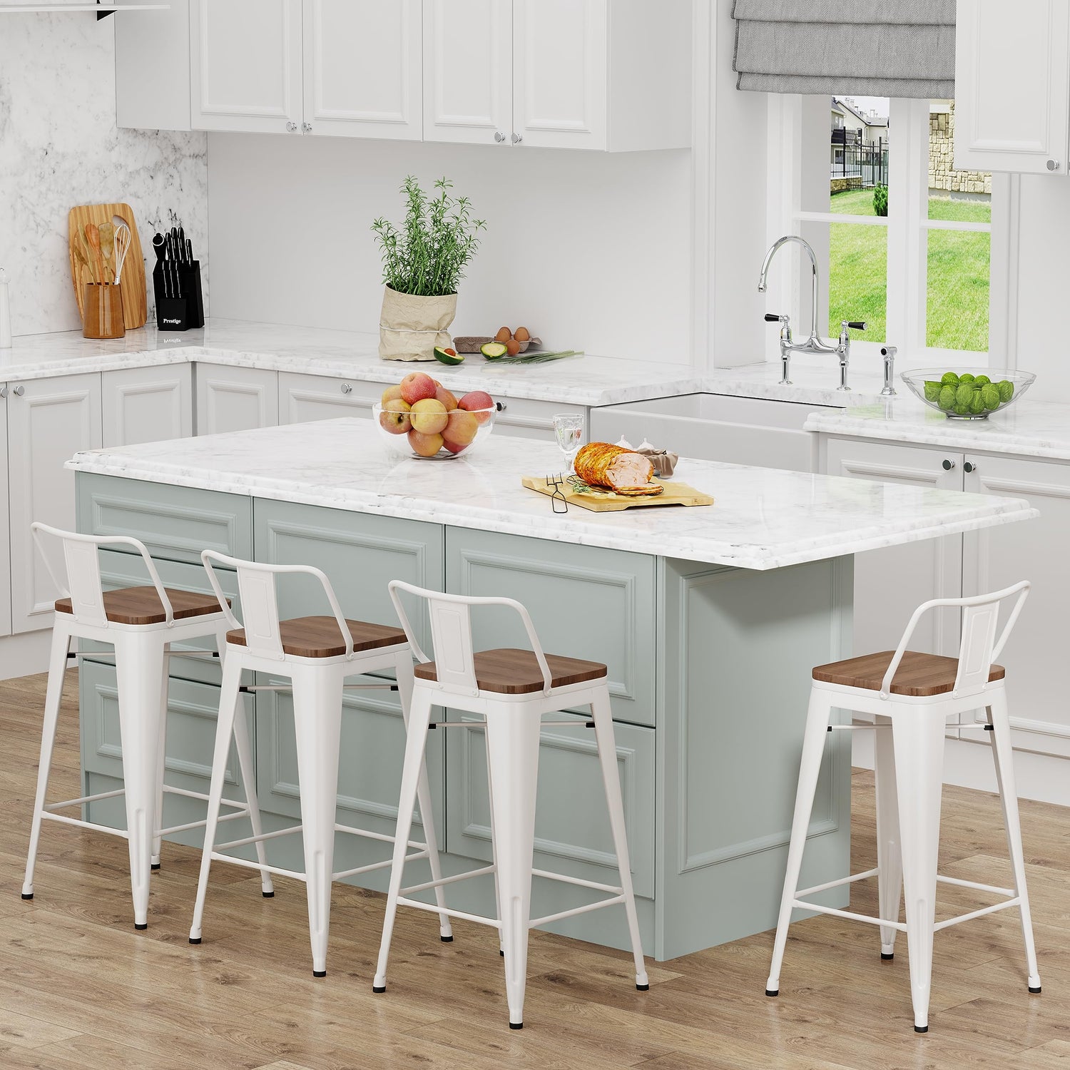 Yongchuang 26 inch Metal Bar Stools Set of 4 Counter Height Barstools Farmhouse Kitchen Bar Chairs with Wood Seat Low Back Cream White
